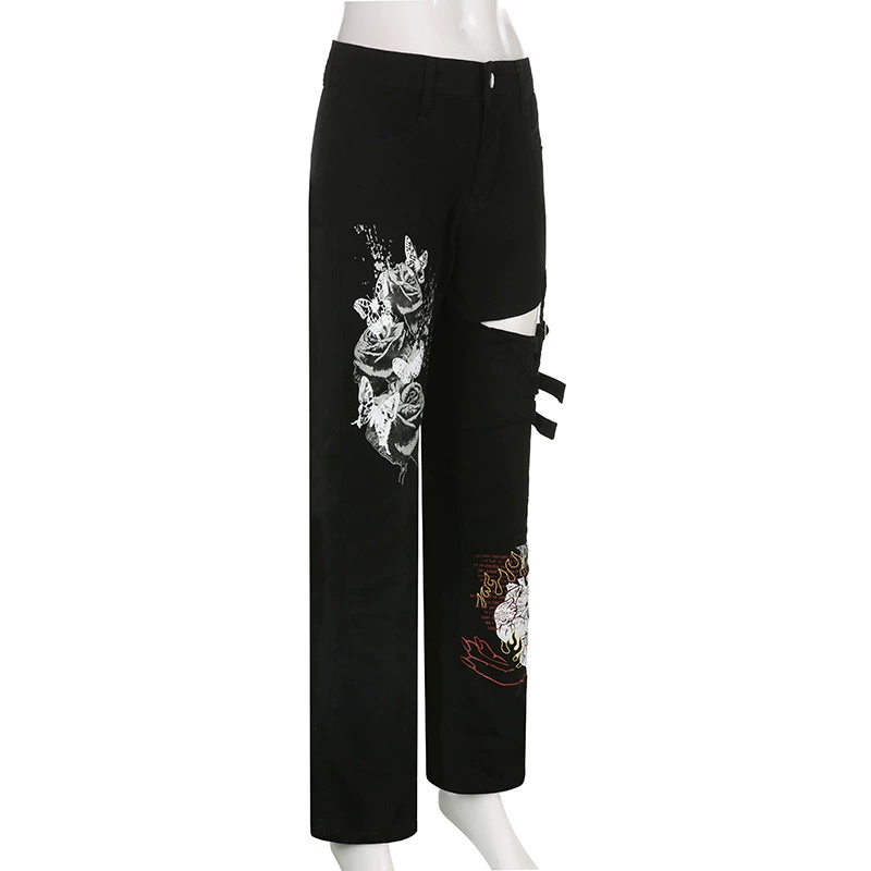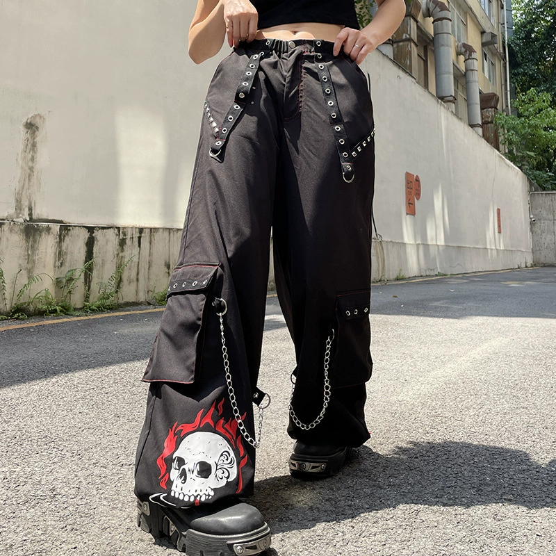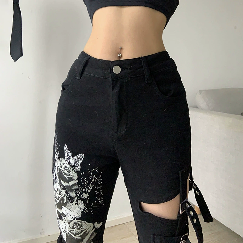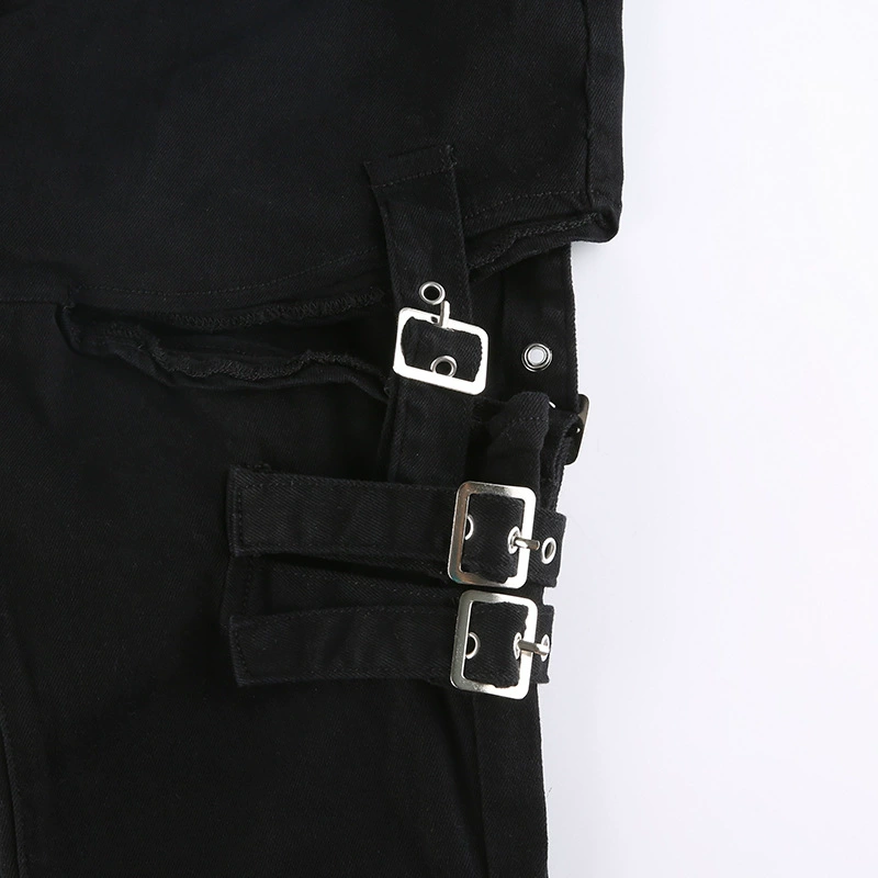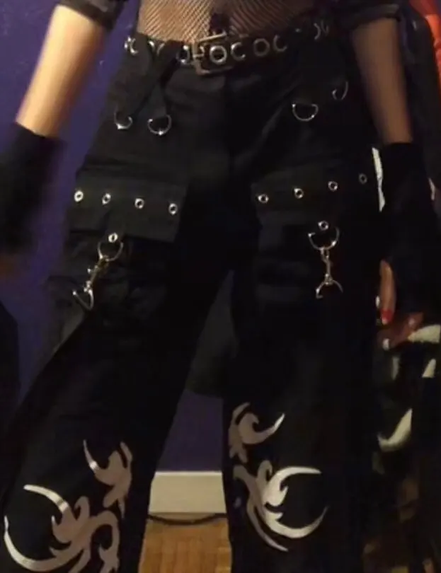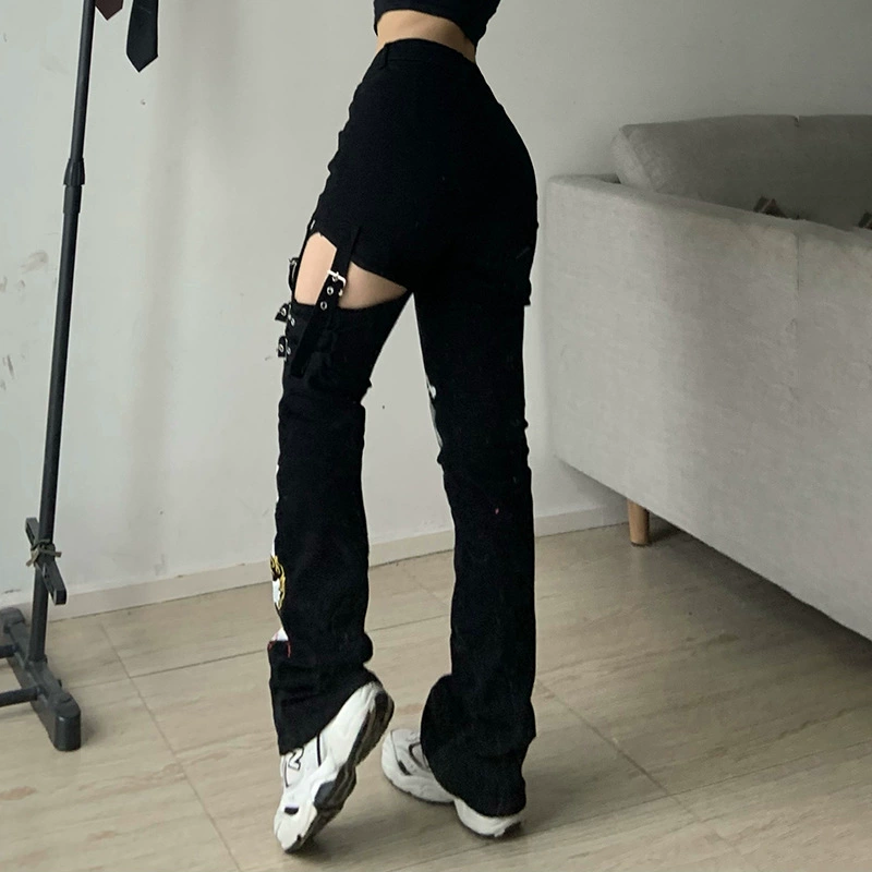Брюки WeiYao женские джинсовые в стиле панкготика, модные штаны-карго с заниженной талией и темным академическим принтом, с пряжкой с Люверсами