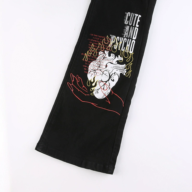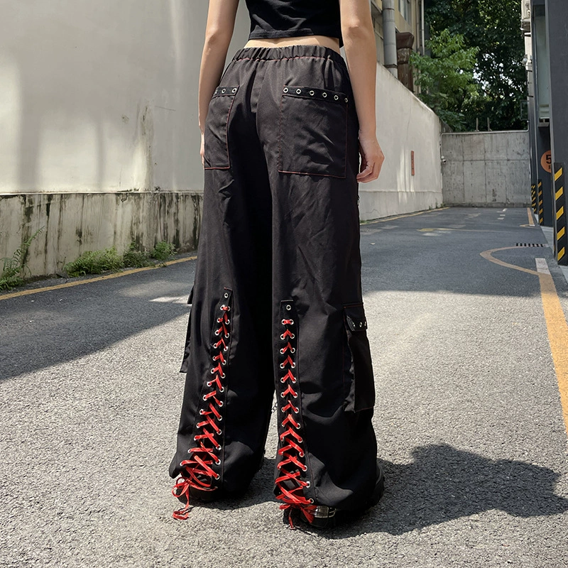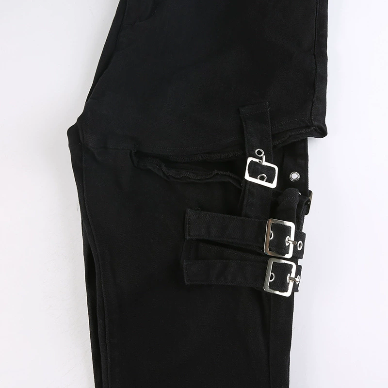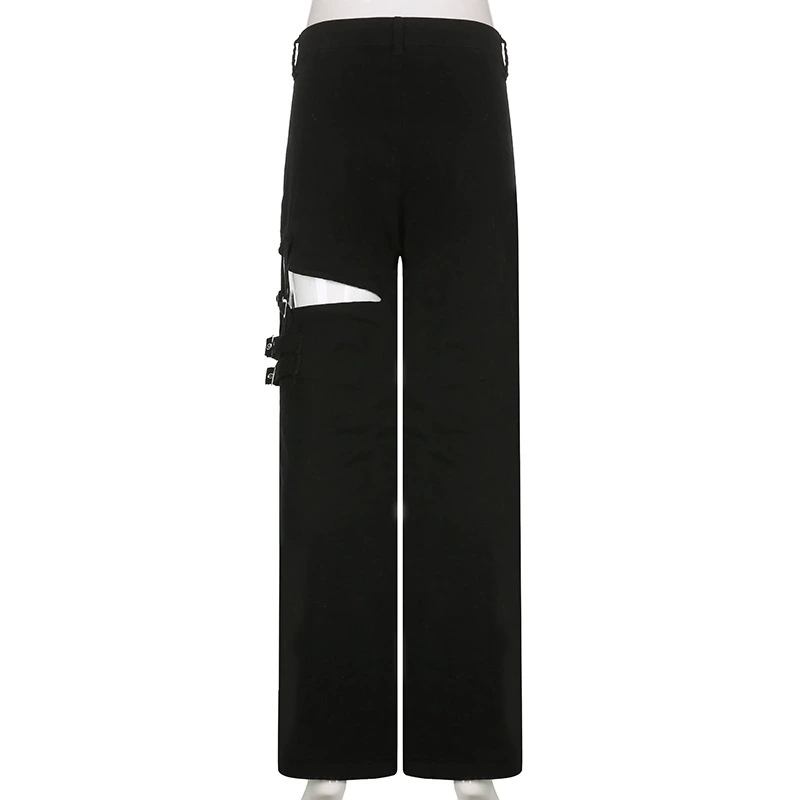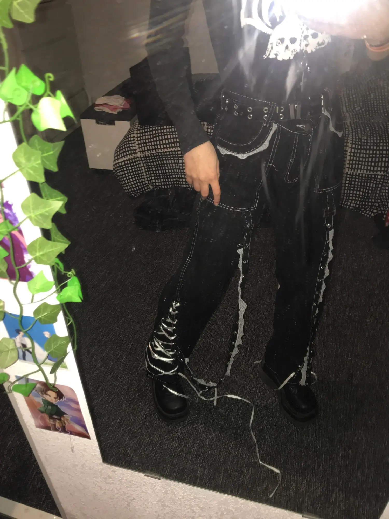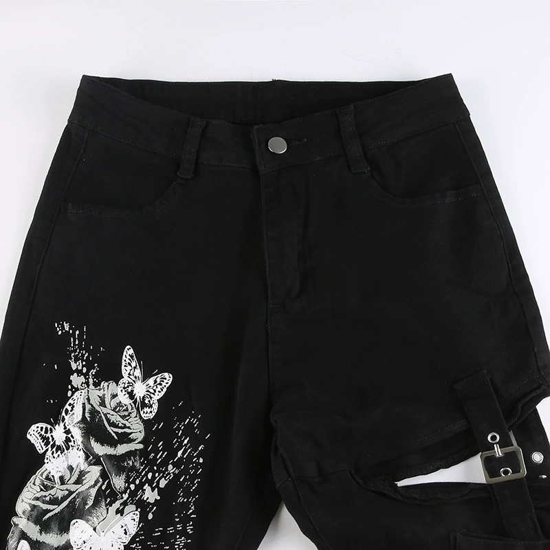 Брюки WeiYao женские джинсовые в стиле панкготика, модные штаны-карго с заниженной талией и темным академическим принтом, с пряжкой с Люверсами