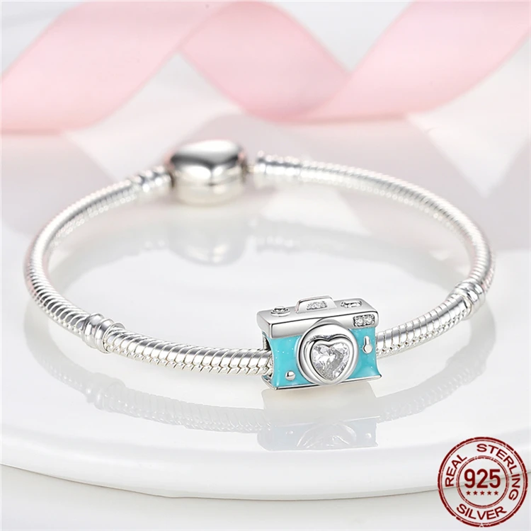 Бусины-подвески из серебра 100% пробы с черепашкой и камерой