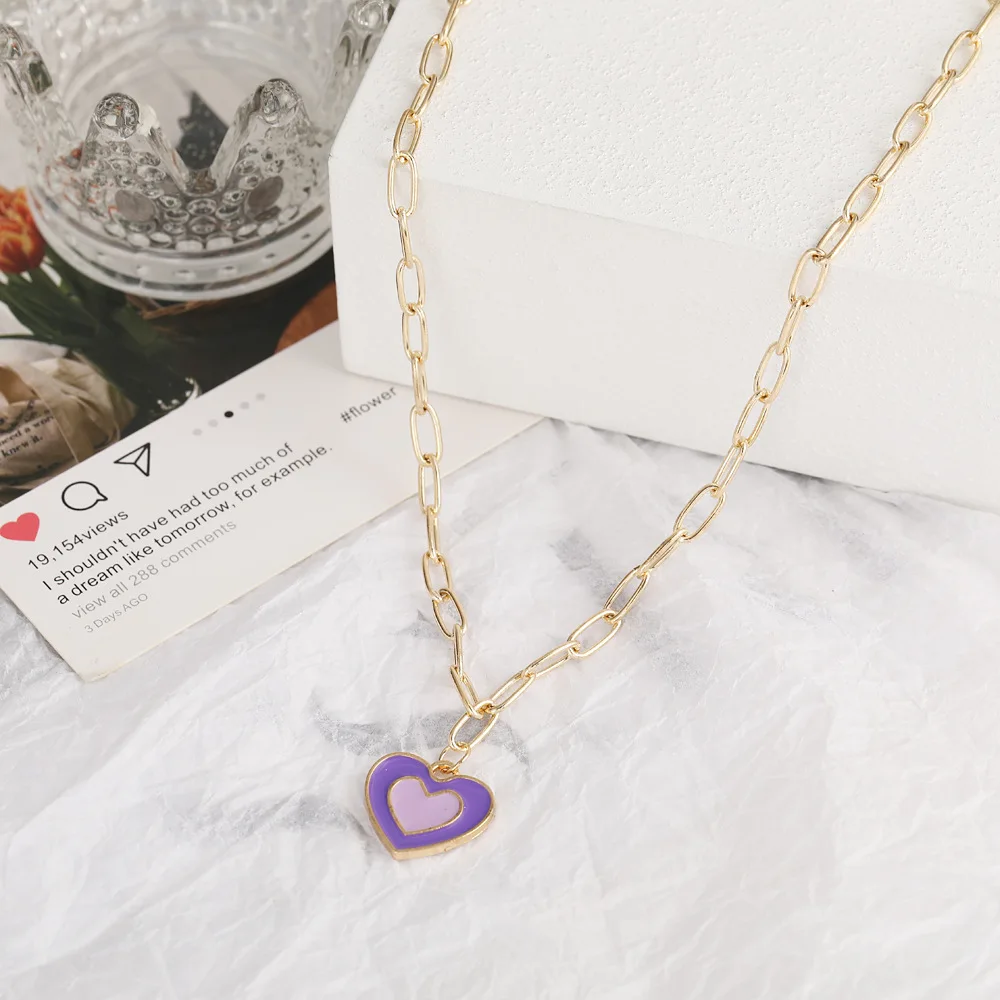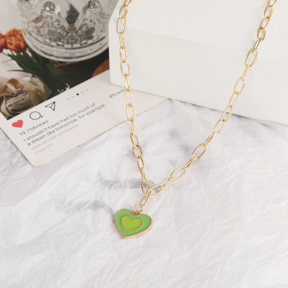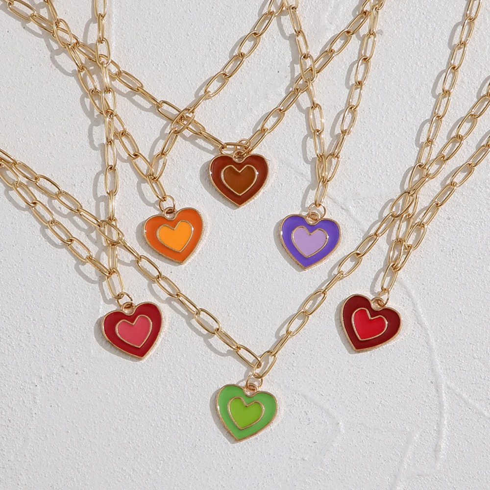 Модное женское ожерелье в форме сердца, креативное ожерелье из сплава с капельной пропиткой, разноцветное ожерелье с подвеской в форме сердца, ювелирные изделия, ожерелья для женщин