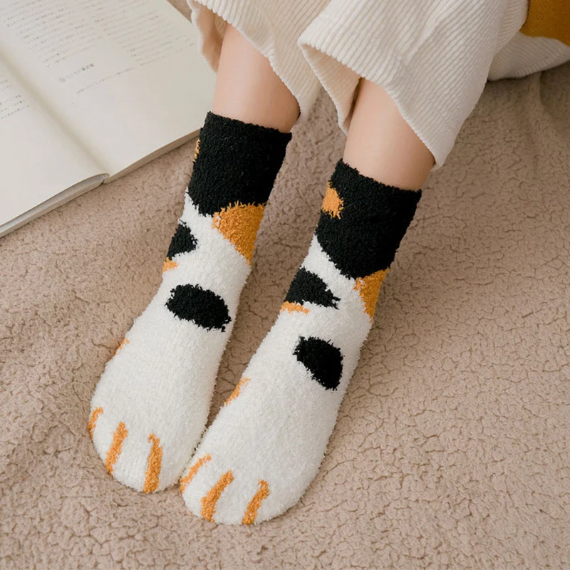 Носки женские осенне-зимние, теплые, плюшевые, кошачьи лапки