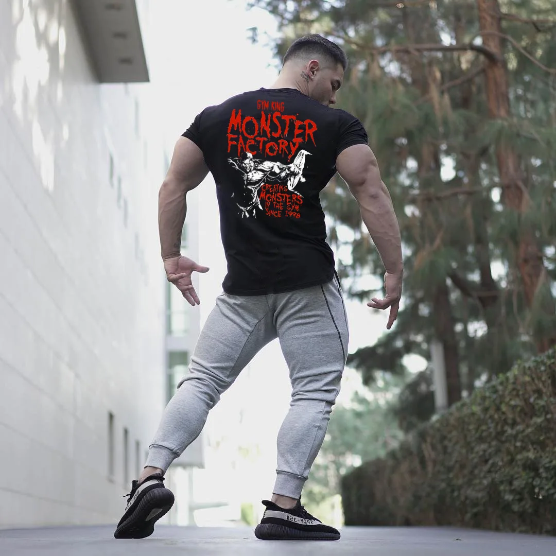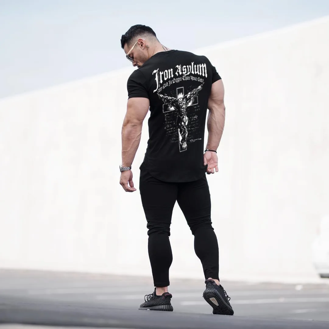 Мужская спортивная футболка для фитнеса и бодибилдинга, летняя повс...