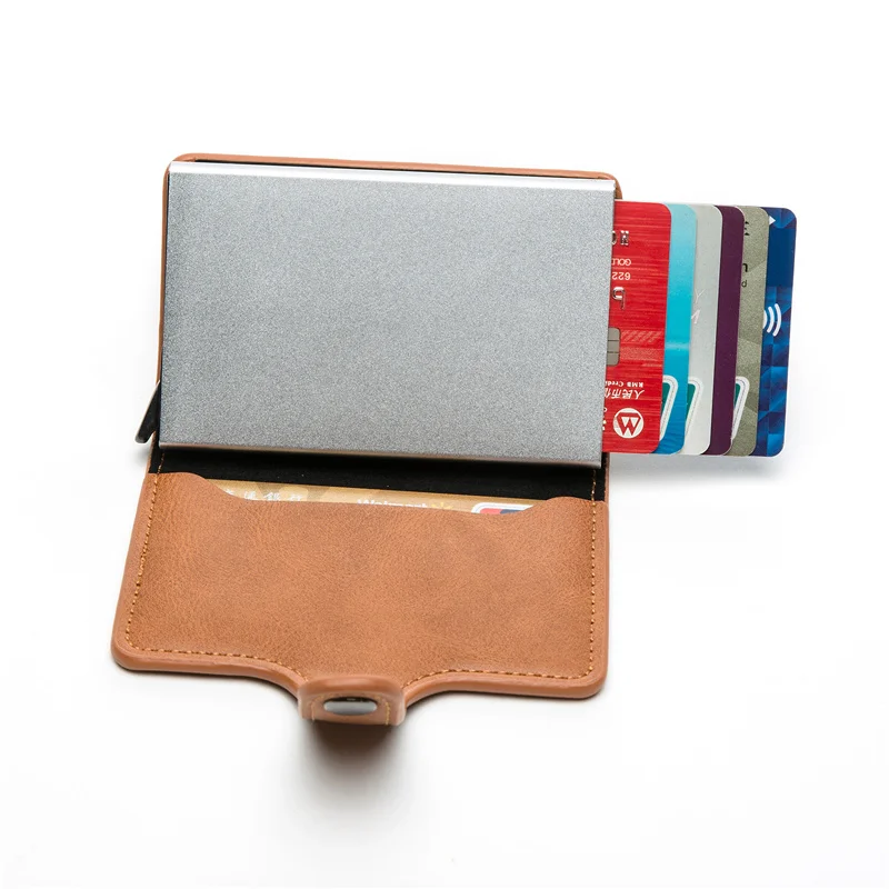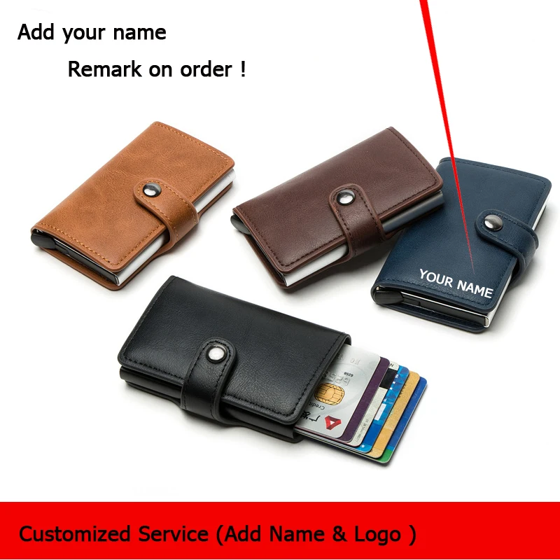 Индивидуальный держатель для карт с именем и RFID-блокировкой, мужской и женский кожаный кошелек с алюминиевым чехлом