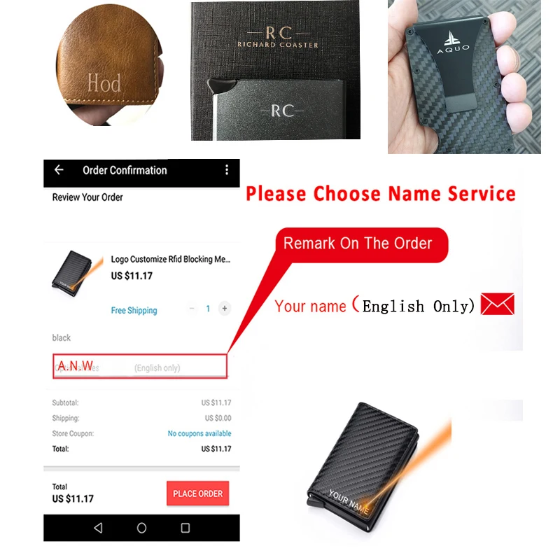 2. Пожалуйста, добавьте свое имя в заметку для заказа или укажите свое имя в сообщении, если вы не добавите Примечание, мы вышлем вам кошелек без имени