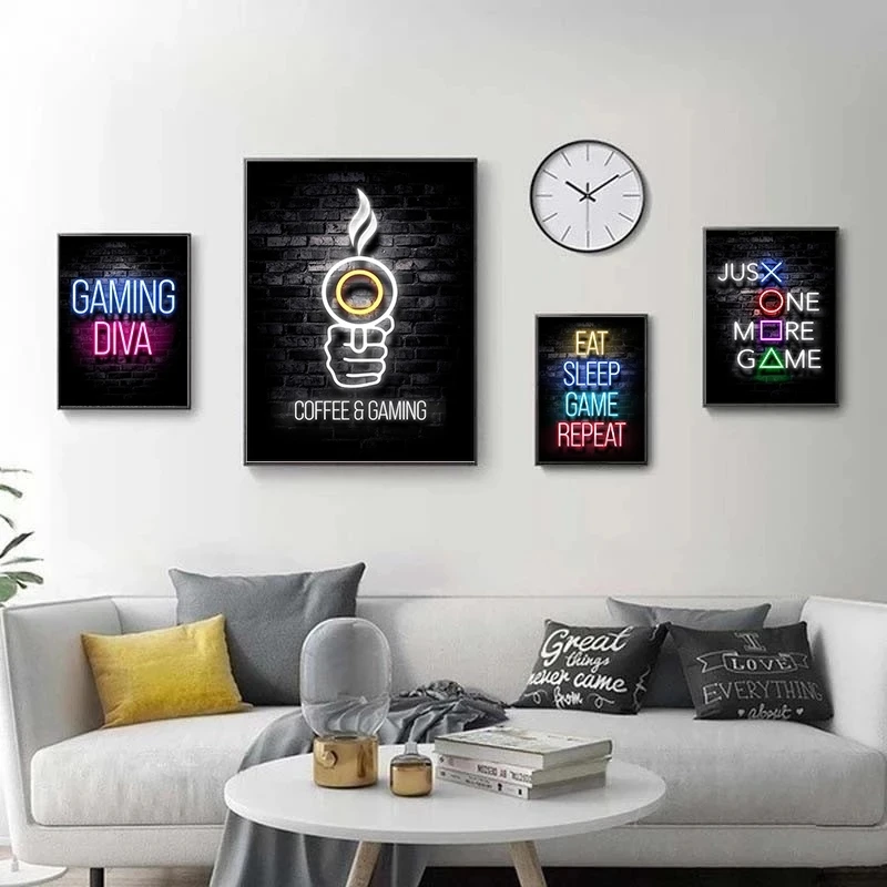 Игровой постер, Картина на холсте для геймеров, плакат Eat Sleep, печать на стене, картина для детской декоративной игровой комнаты
