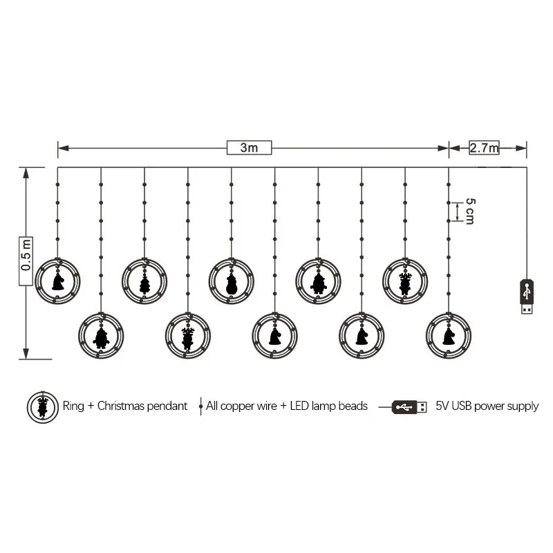 Светодиодная Праздничная гирлянда, Рождественское украшение, комнатное украшение, светильник годний декоративный шнурок с Сантой, аксессуары для украшения