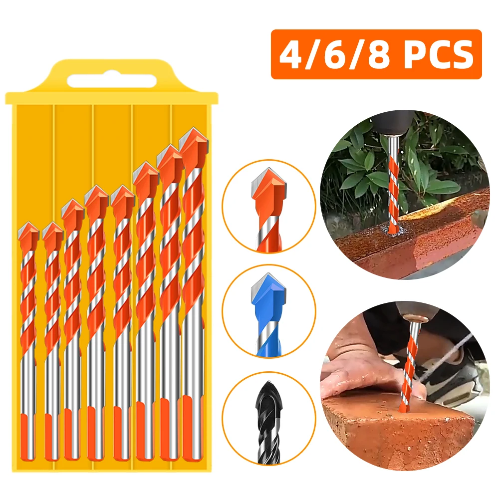 Многофункциональное сверло для стекла, металла, керамической плитки, треугольная Алмазная дрель в коробке, бетона, кирпича, дерева, сверло для сверления отверстий