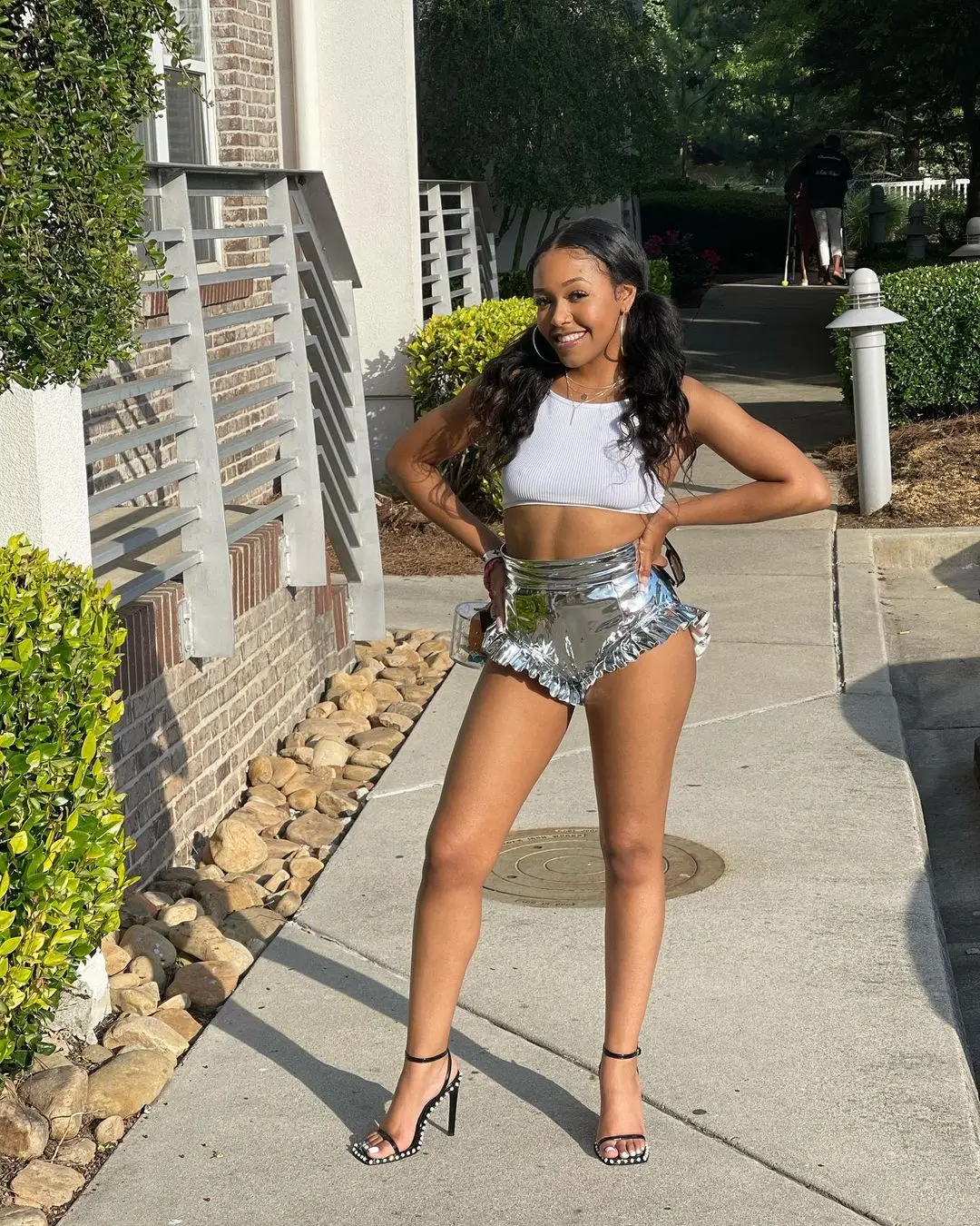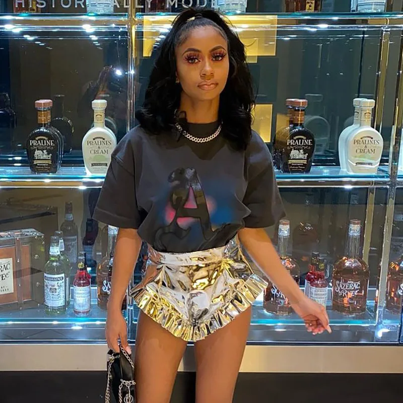 Сексуальные блестящие шорты HAOYUAN с оборками металлик из ПУ кожи,...
