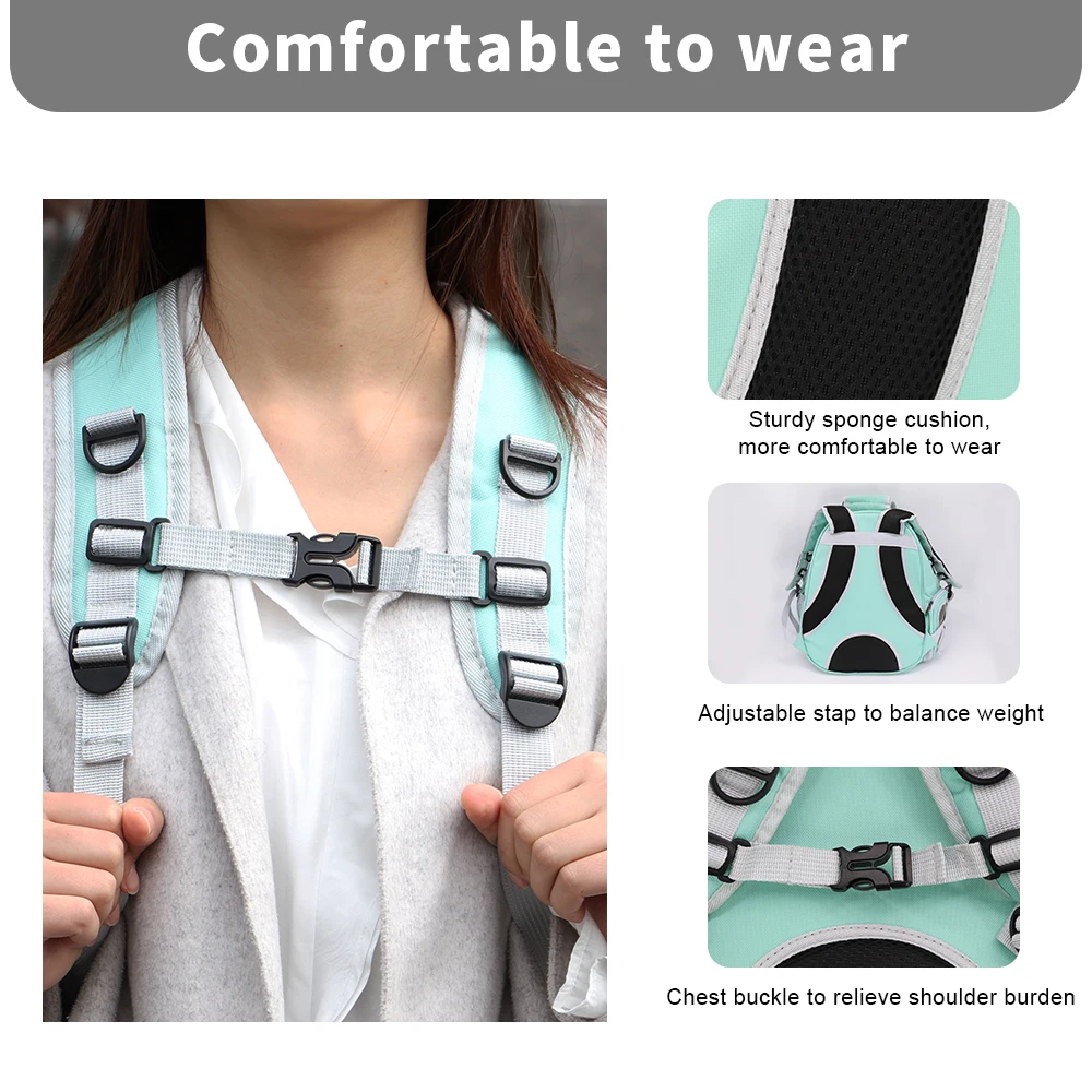 Характеристики: Сетчатое окно для безопасности, вентиляции и видимости, прочные регулируемые плечевые ремни