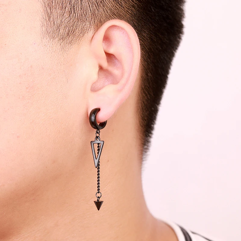 Серьги-подвески BESTONEDAY из титановой стали в стиле панк для мужчин и женщин, ювелирные украшения с перекрестными черными вставками без проколов, поддельные серьги, 1 шт.