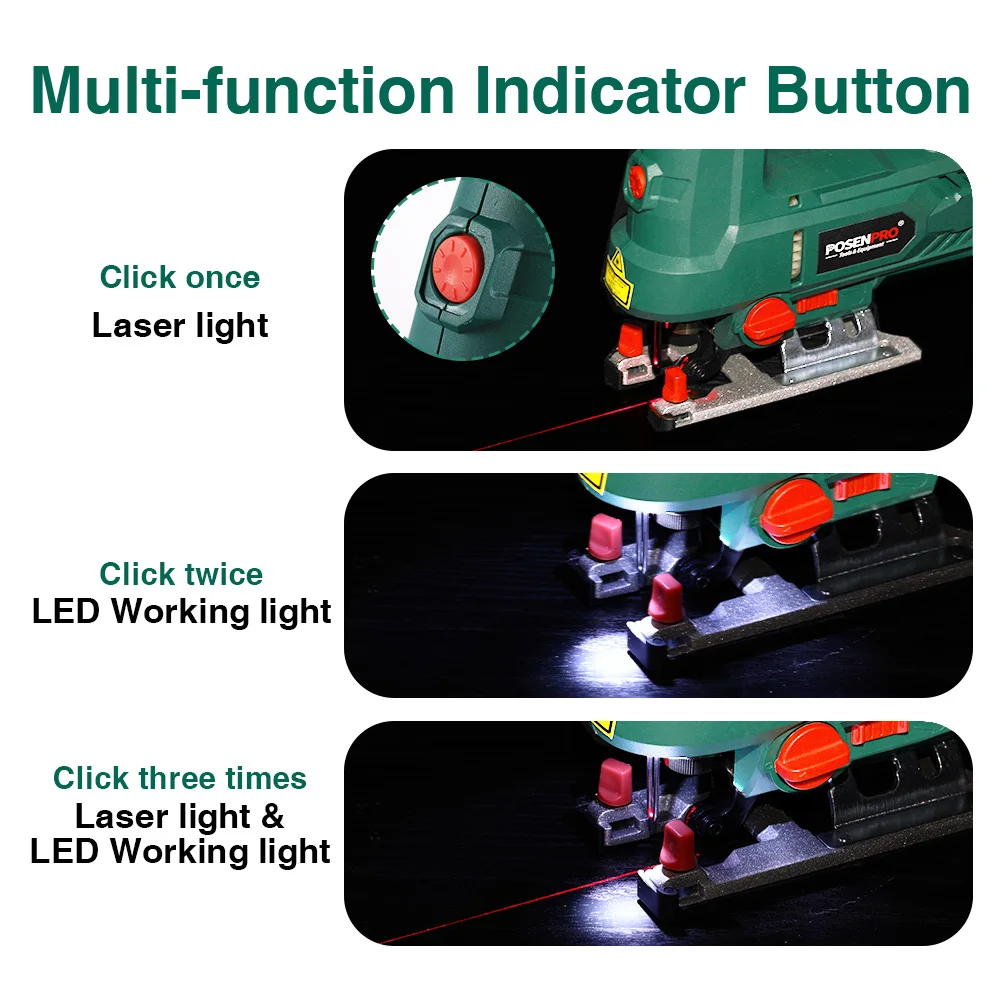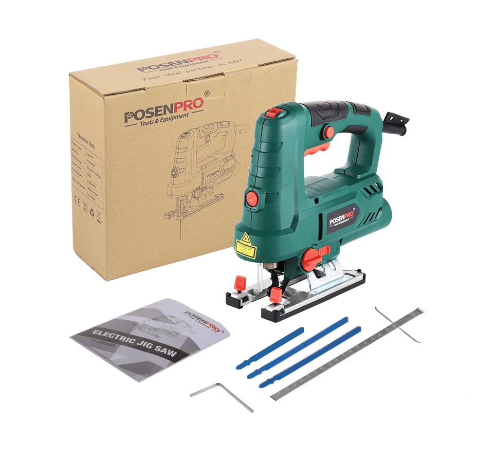 POSENPRO PPJS800B 800W электрическая пила поставляется с высококачественным медным мотором, который обеспечивает до 3,000spm, подходит для резки материалов, таких как дерево, пластик, сталь, алюминий и т. Д. Эта пила имеет четыре орбитальных настройки и имеет эргономичный дизайн, прорезиненное сцепление для обеспечения большего комфорта и контроля. Замена пильного диска без инструментов для легкой установки и предотвращения падения пильного диска, устранения времени простоя проекта. Регулируемый башмак обеспечивает Скошенные порезы как слева, так и справа до 45 градусов. Линейка может повысить точность независимо от прямой линии или пончика. Когда вы используете лобзик, пожалуйста, планируйте ширину бетона резки. Встроенная лазерная линия Улучшает точность резки. Светодиодный рабочий светильник делает рабочую среду четкой.