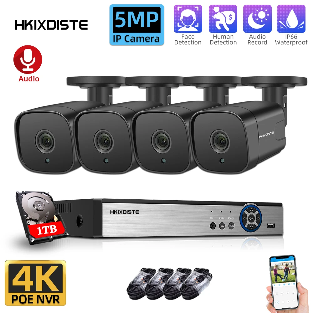 4K 4CH POE NVR AI система обнаружения человека, запись аудио, ip-камера H.265, внутренняя наружная безопасность, CCTV, комплект видеонаблюдения 4ch
