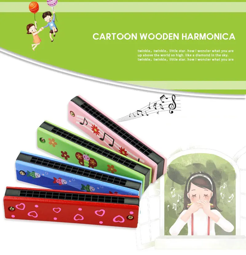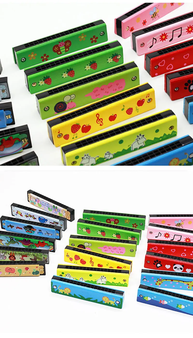 Милый мультяшный принт, 16 отверстий, деревянная гармоника, музыкальный инструмент, Монтессори, обучающие игрушки для детей, подарок на день рождения