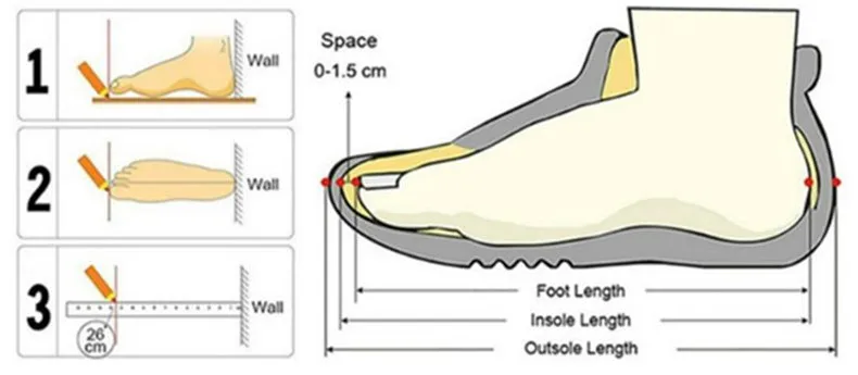 2. Пожалуйста, выберите соответствующий размер обуви в соответствии с длиной Вашей стопы.