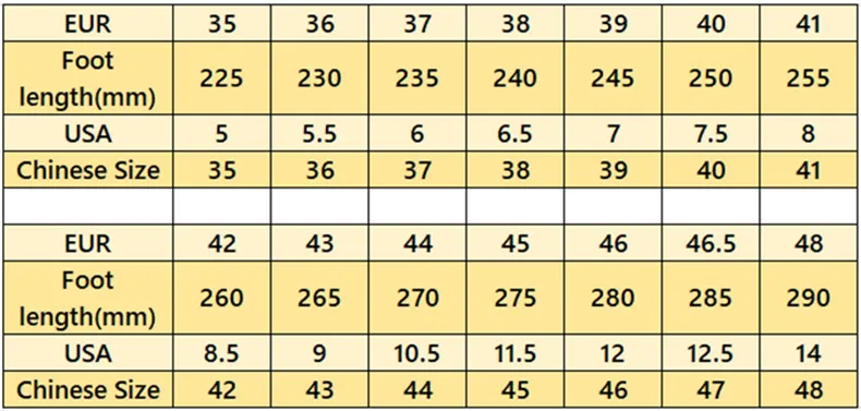 3. Размер США или европейский размер могут отличаться от размера вашей страны, пожалуйста, выбирайте размер только в соответствии с длиной Вашей стопы.