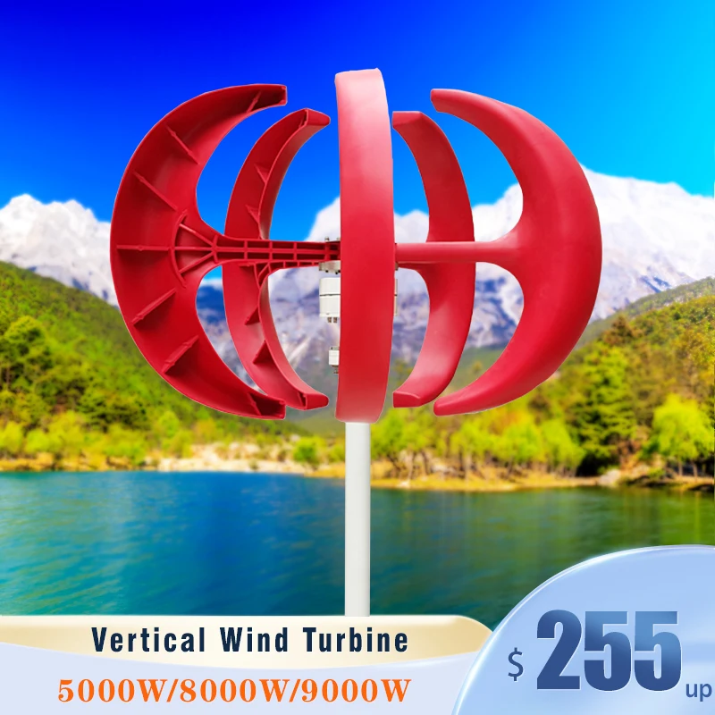 Ветряные турбины 9000 Вт, 12 В, 24 В с вертикальной осью, генератор фонаря, 5 лопасти и двигатель, ветряная мельница, энергетические заряжаемые турбины для дома и кемпинга