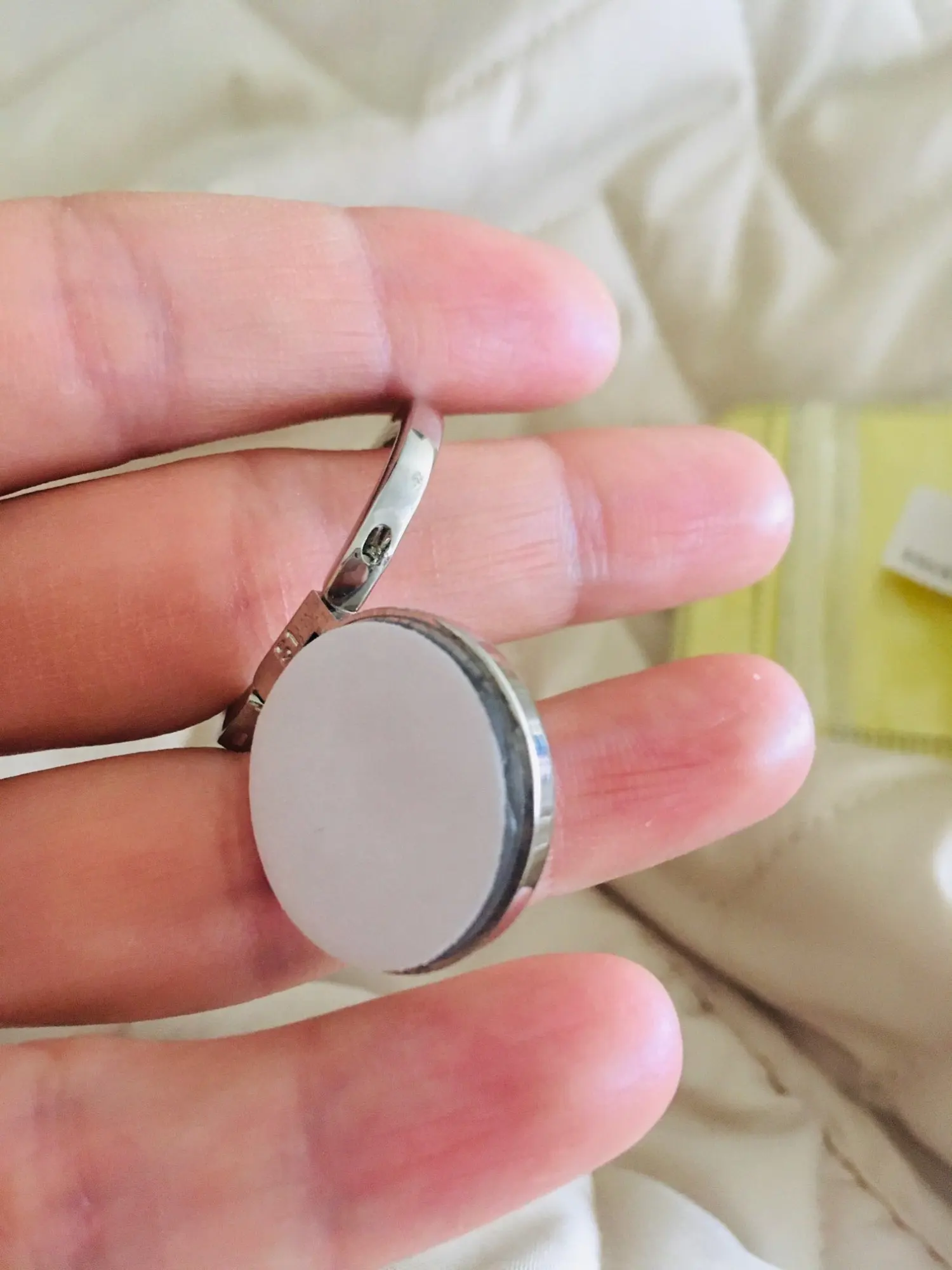 Держатель-кольцо качественное,небольшое,блестящее.Прилипает сильно.