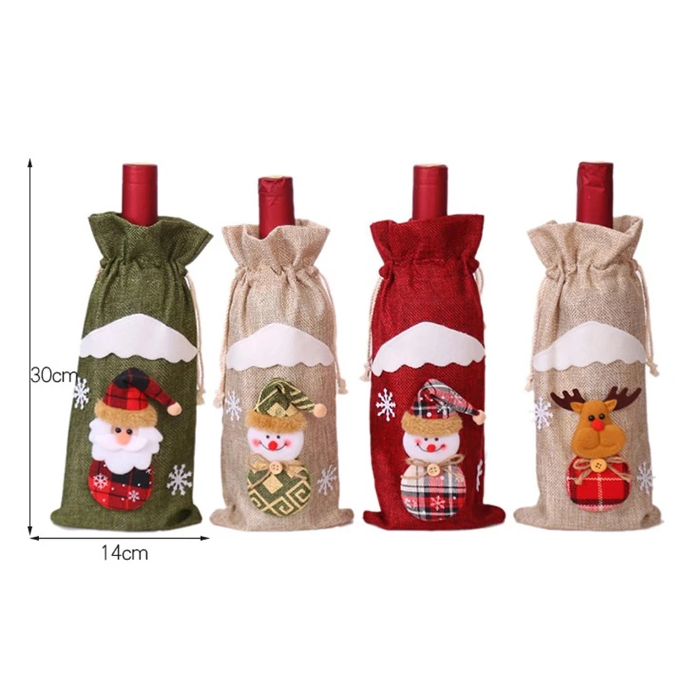 Товар: крышка винной бутылкиМатериал: лен, тканьРазмер: (длина * ширина) 30*14 смУзор:Стиль 1: Санта-КлаусСтиль 2: бежевый снеговикСтиль 3: Красный снеговикСтиль 4: Лось