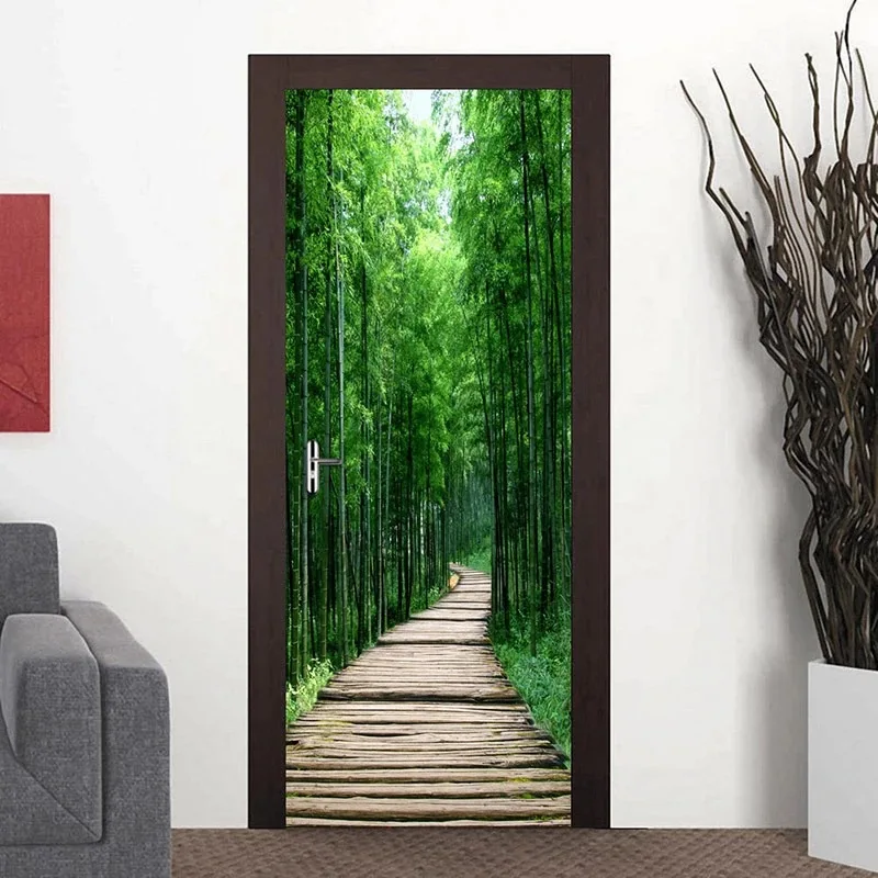 Креативная 3D наклейка на дверь, бамбуковый лес, маленькая дорога, сделай сам, домашний декор, самоклеящиеся обои, обновление двери в спальне, фотообои