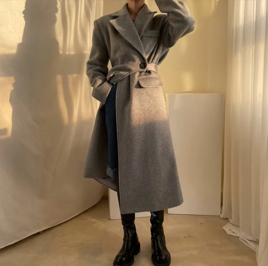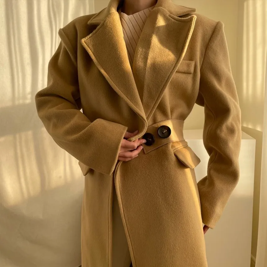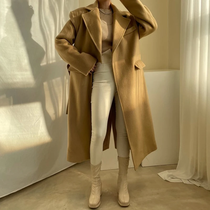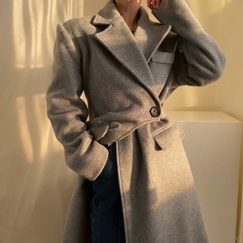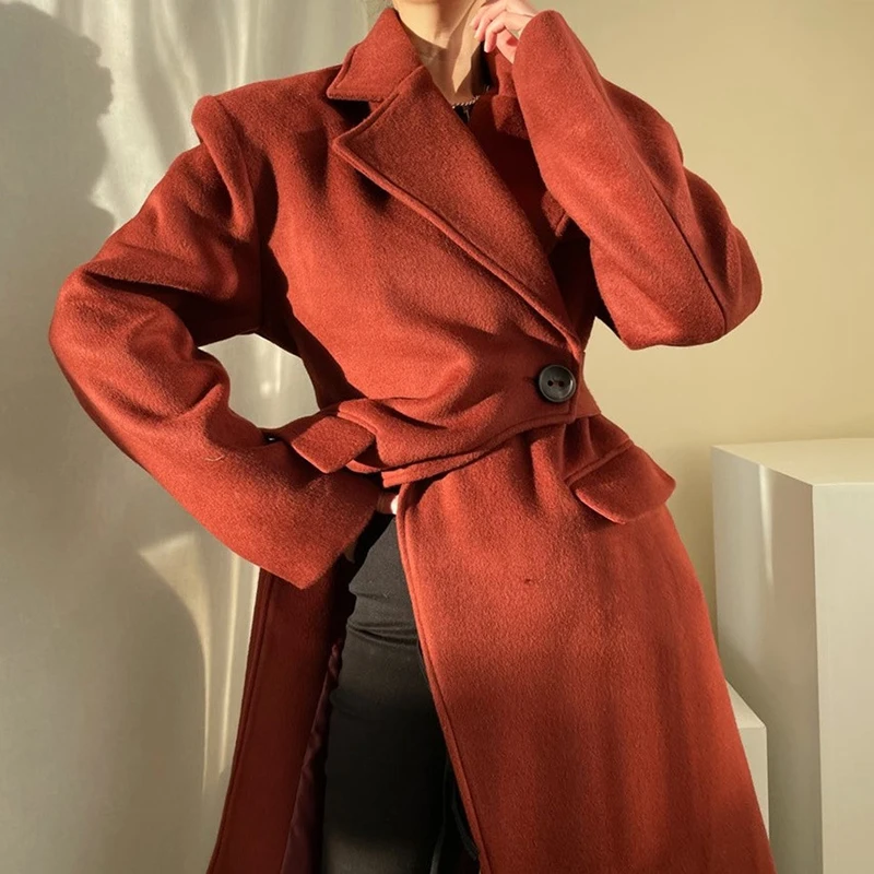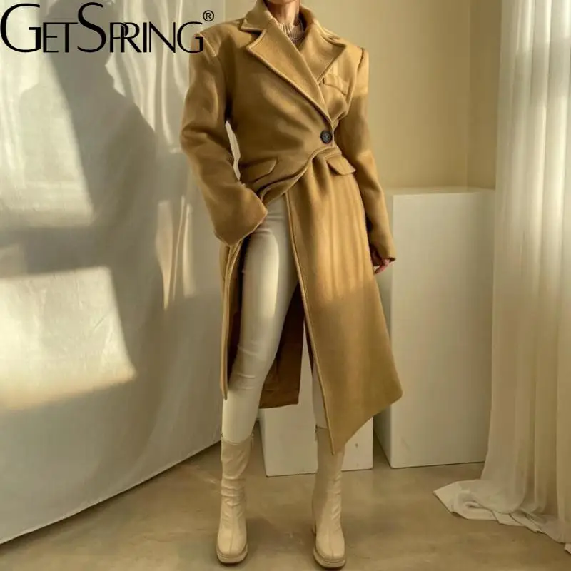 GetSpring Женское шерстяное пальто, винтажная Асимметричная зимняя куртка на одной пуговице, однотонное темпераментное теплое длинное пальто, 2021