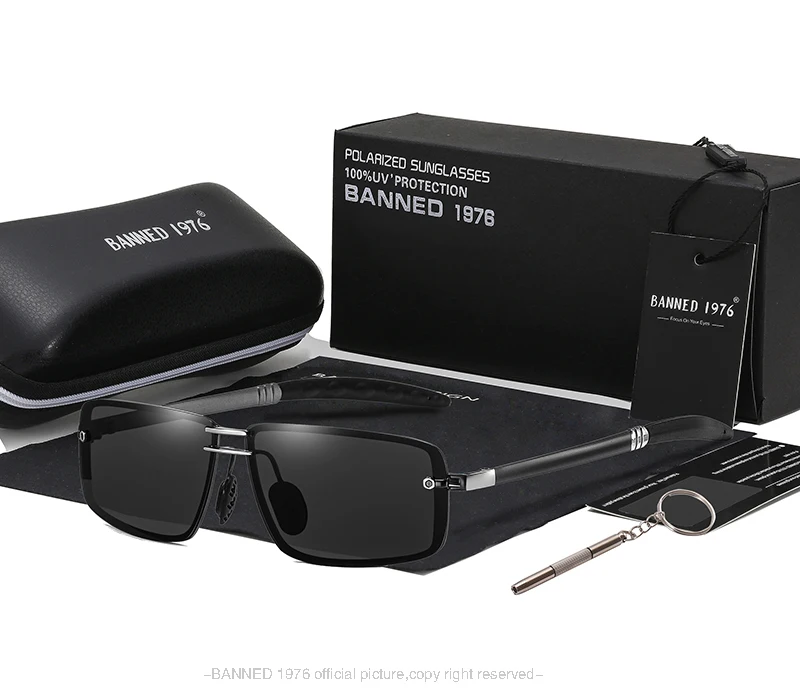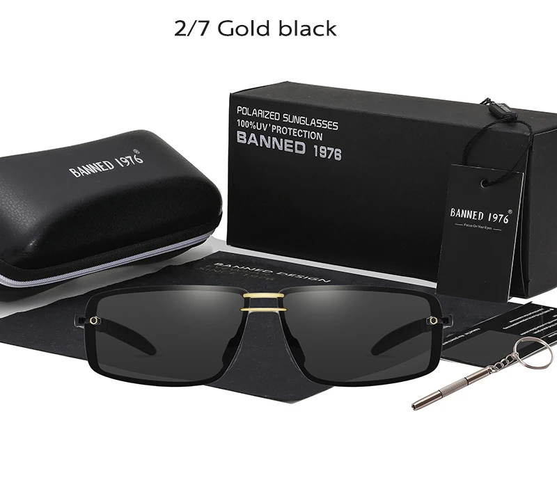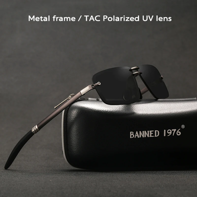 Солнцезащитные очки поляризационные UV400 Мужские, модные брендовые солнечные аксессуары в металлической квадратной оправе, для вождения
