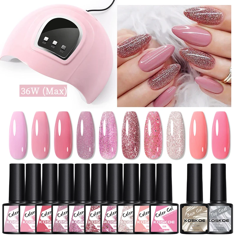 Набор УФ-ламп KOSKOE 1012 шт., аксессуары для маникюра с полуперманентными фиолетовыми и розовыми блестками, бритье 54 Вт, набор для нейл-арта