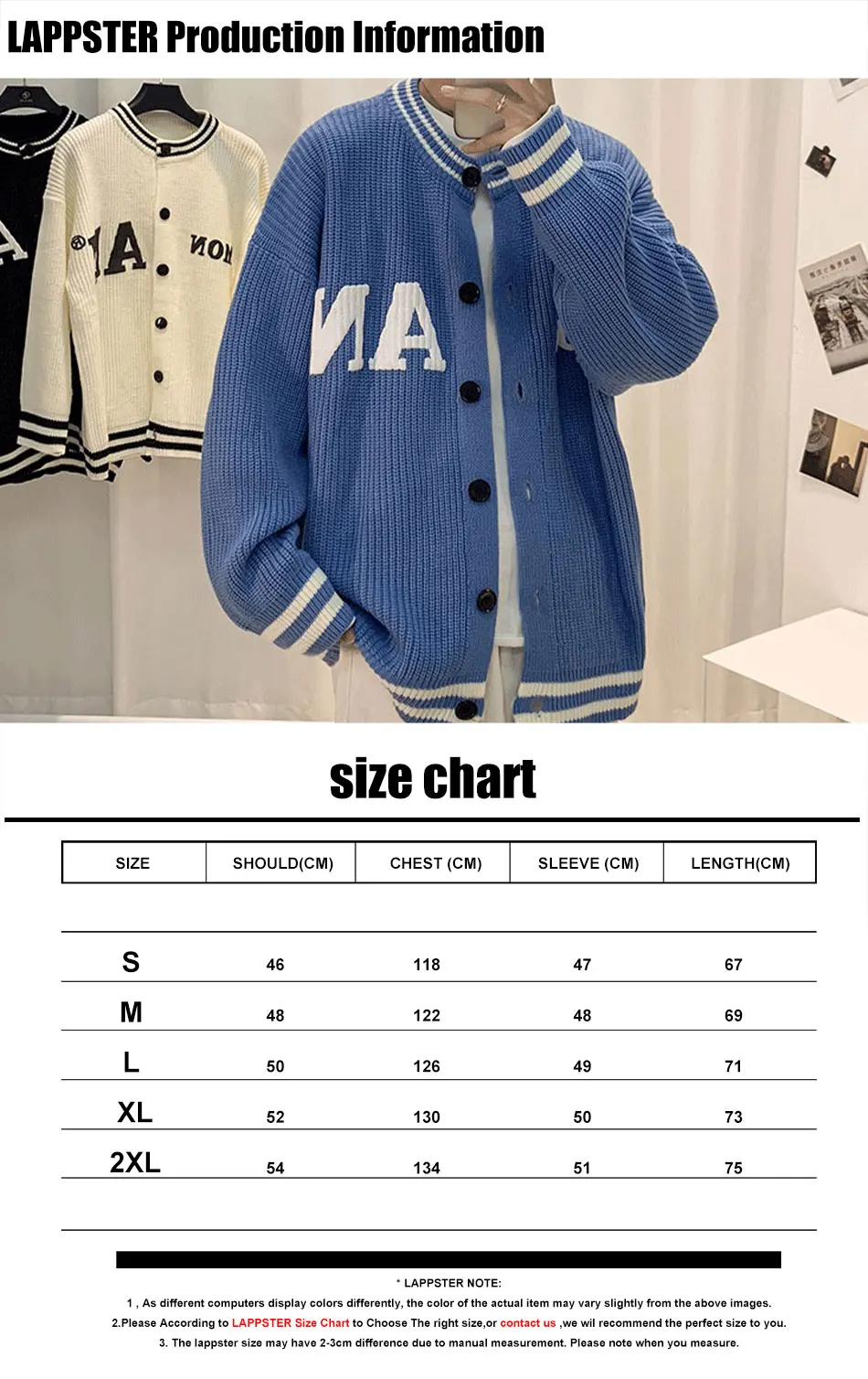LAPPSTER кардиган Мужская одежда Kpop 2022 мужские свитера Harajuku...