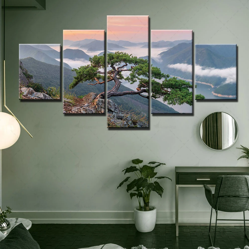 Картина из сосновой древесины, домашнее ландшафтное украшение, настенные художественные принты, Модульная картина, современный постер из 5 панелей для гостиной с рамкой