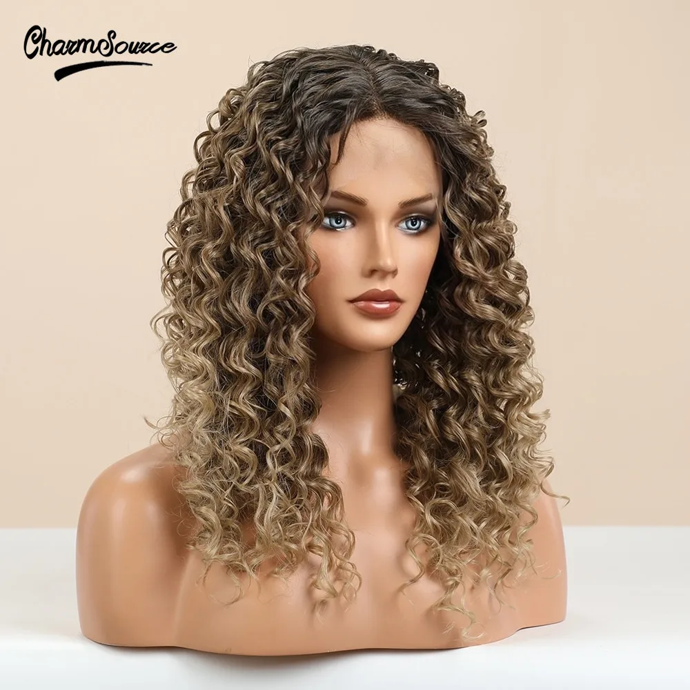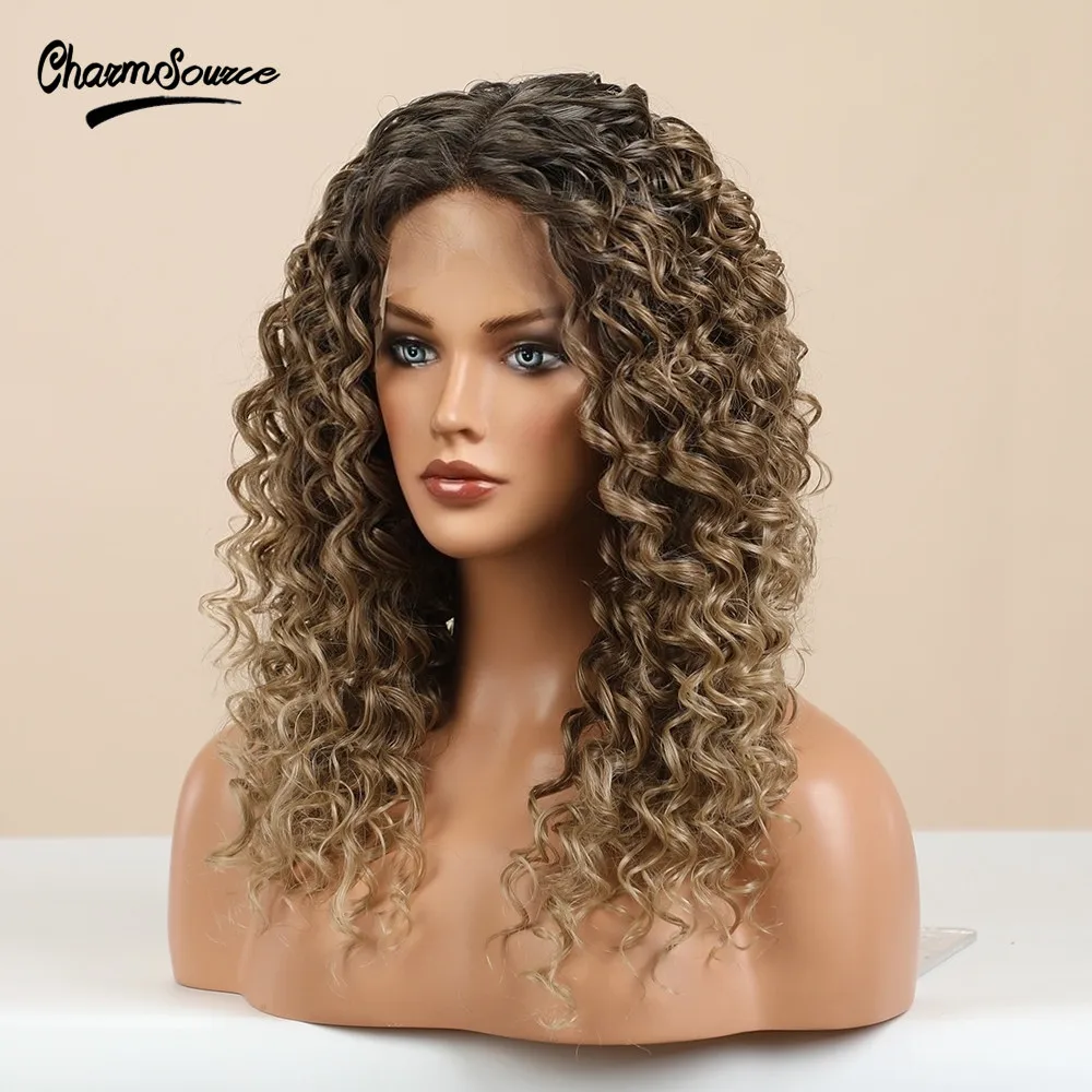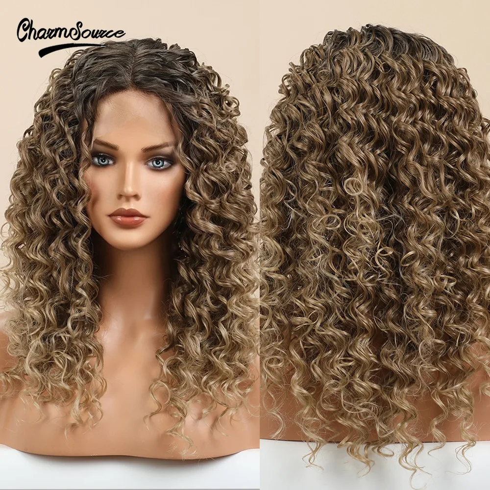Длинные коричневые парики CharmSource с глубокой волной, парик на шнуровке спереди для черных женщин, натуральные синтетические волосы высокой плотности для ежедневного использования и вечеринки