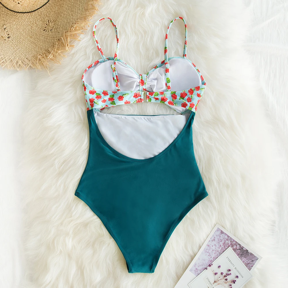 Женский купальник-бикини CUPSHE, зеленый и цветочный купальник со с...