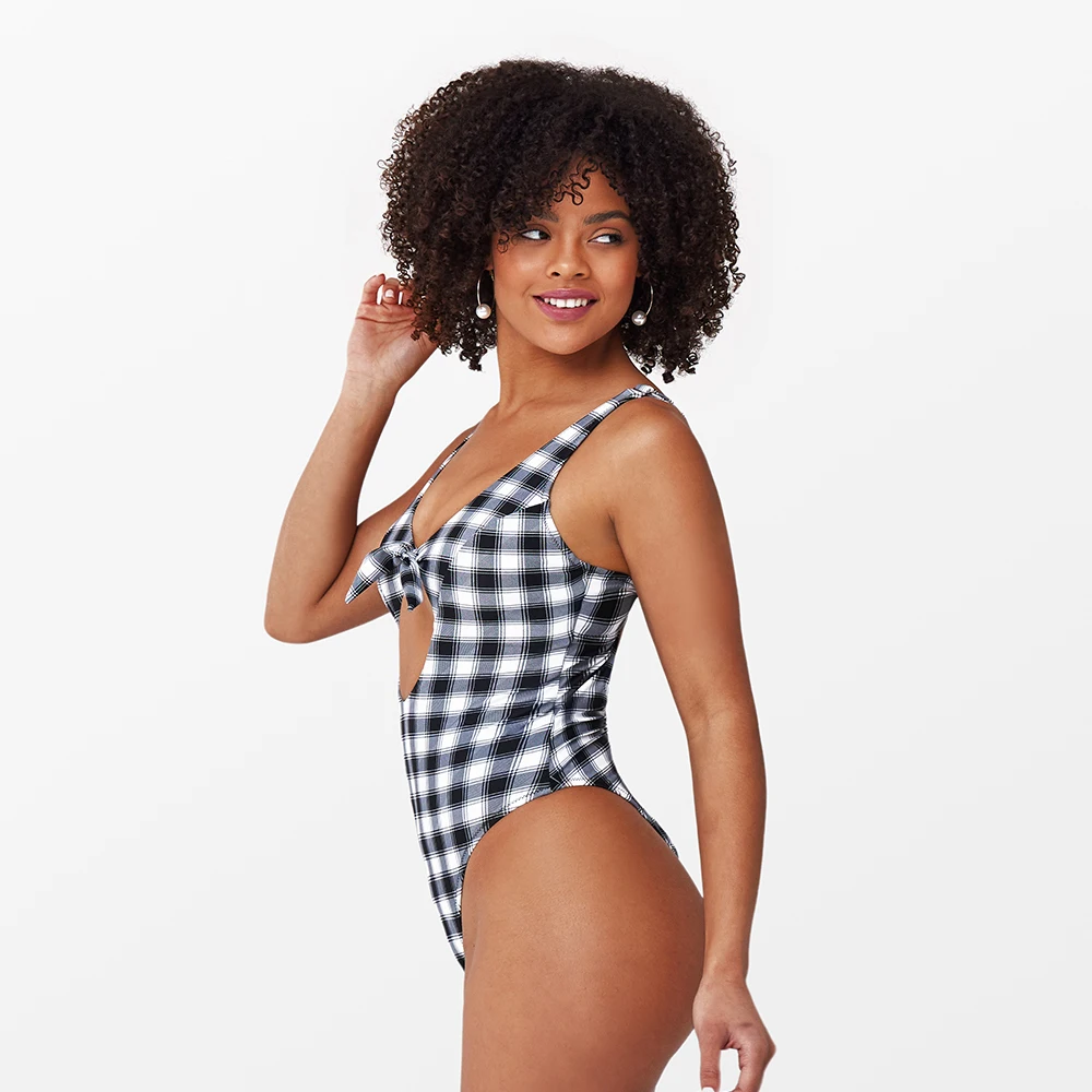 CUPSHE, черный и белый горошек, с поясом, через шею, Цельный купаль...