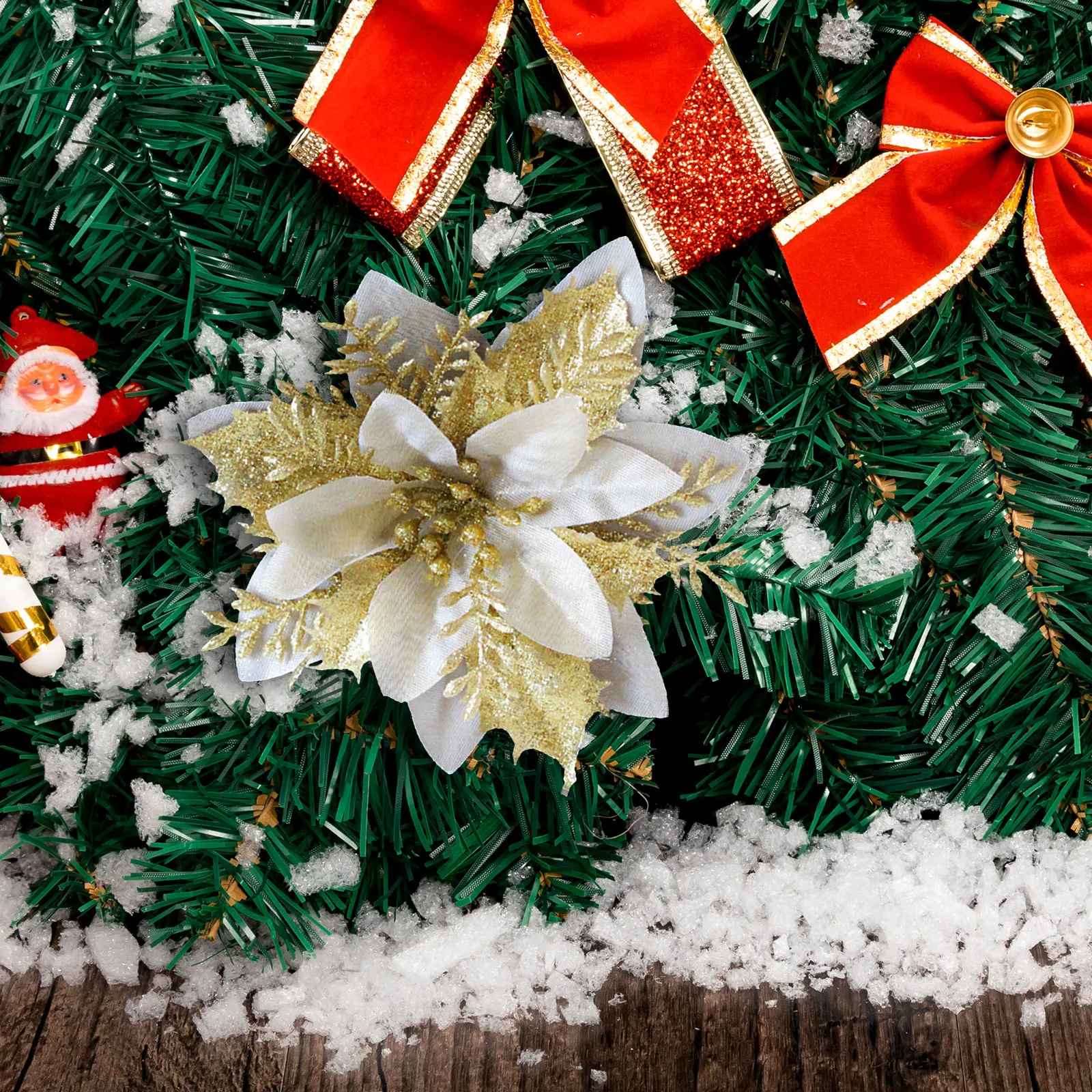 Декор для рождественских елок, блестящие Искусственные цветы со стеблями, Красный Золотой Серебряный цветок для свадебной вечеринки, праздничный декор, пуансеттийный куст, цветочный венок для декора на открытом воздухе и в помещении, аксессуары для рождественского декора