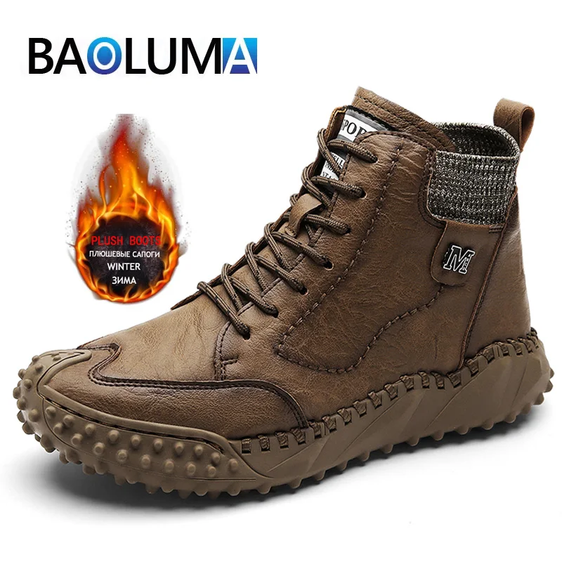 Мужские зимние ботинки, уличные мужские зимние ботинки, кожаные муж...