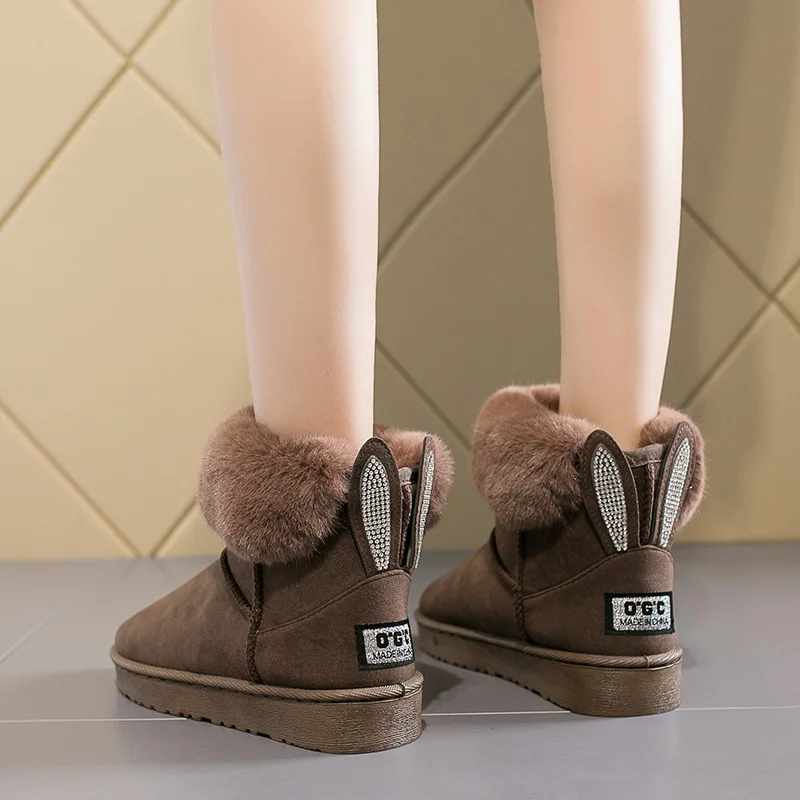 Ботинки женские зимние без застежек, с кроличьими ушками, плюшевые, на плоской платформе