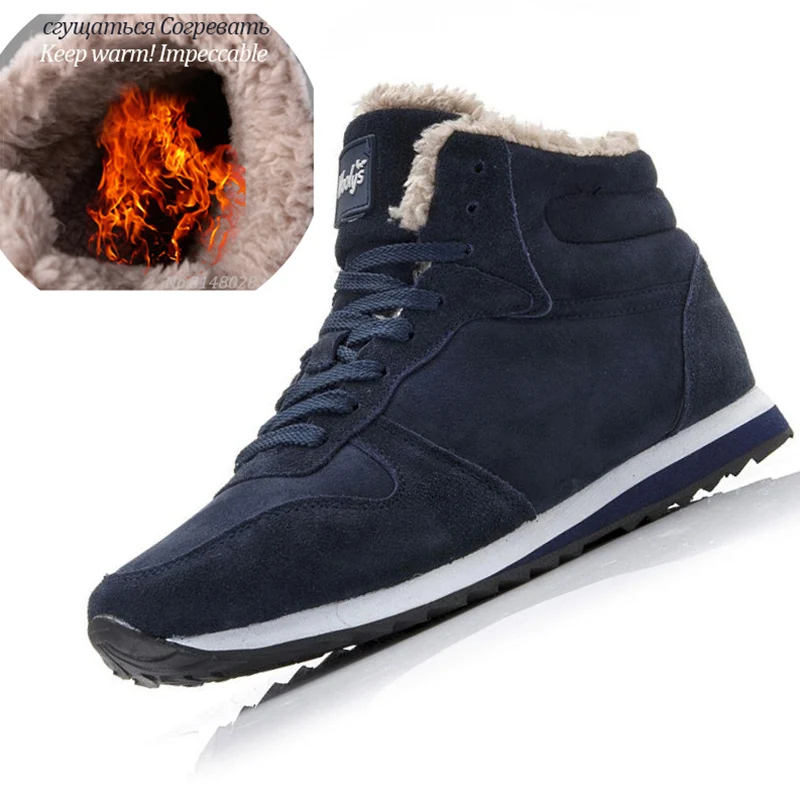 Мужские ботинки, теплая зимняя обувь на меху, размера плюс, 48, Zapatillas Hombre, Зимняя мужская обувь, повседневные зимние ботинки, мужские кроссовки черные, синие