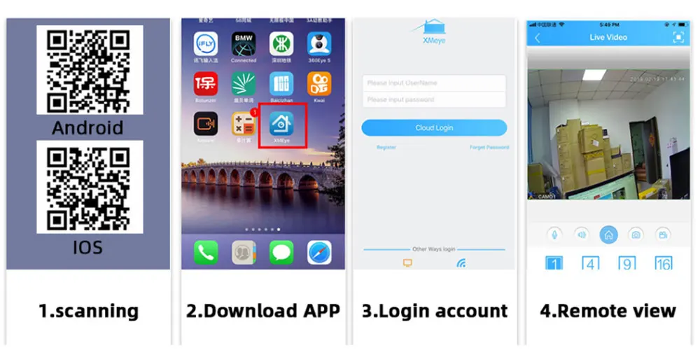 Простая настройка, всего 4 шага для просмотра мобильный телефон, просмотра видео в режиме реального времени из любого места и в любое время с помощью смартфона, Таблица или ПК с передовой технологией P2P, вы можете получить удаленный доступ к вашей системе в течение нескольких минут или меньше, нет необходимости в переадресации, Удаленный доступ никогда не был таким простым!