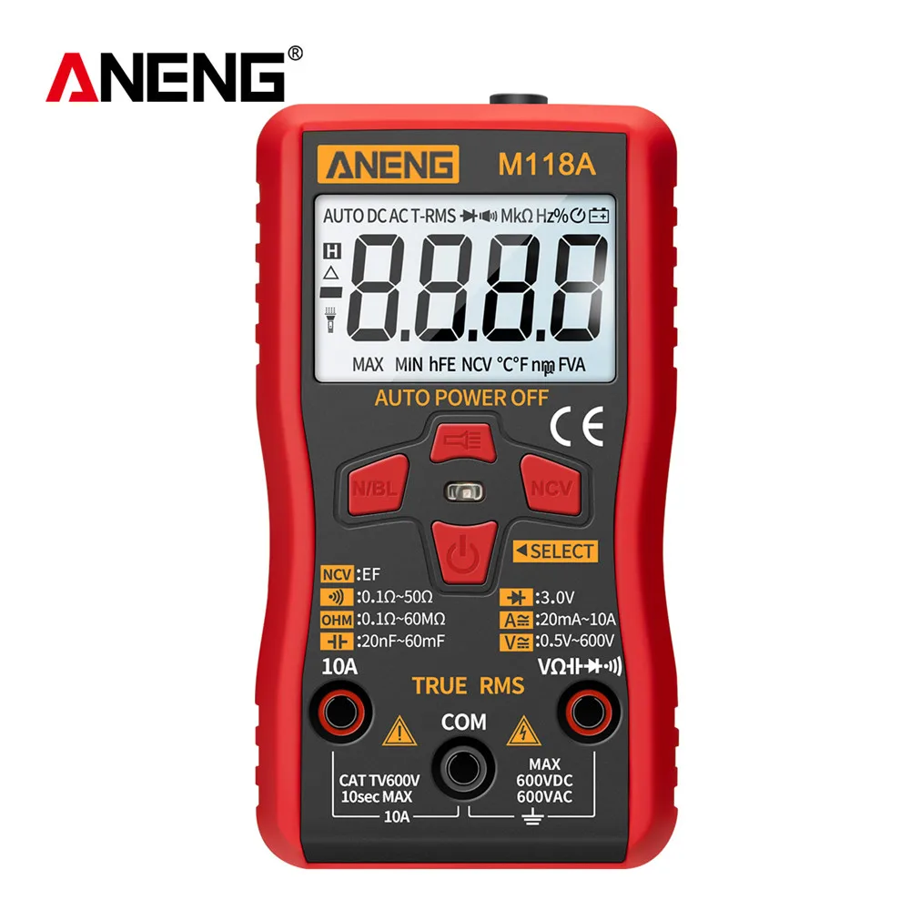 Цифровой мультиметр ANENG M118A, умный тестер с функцией True Rms, Бесконтактный индикатор напряжения, 6000 отсчетов, фонарик