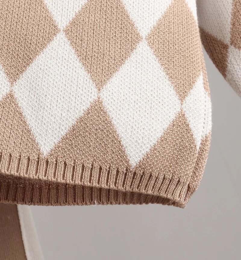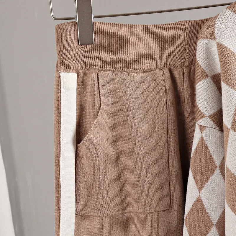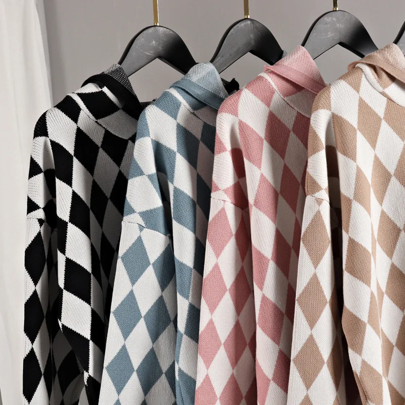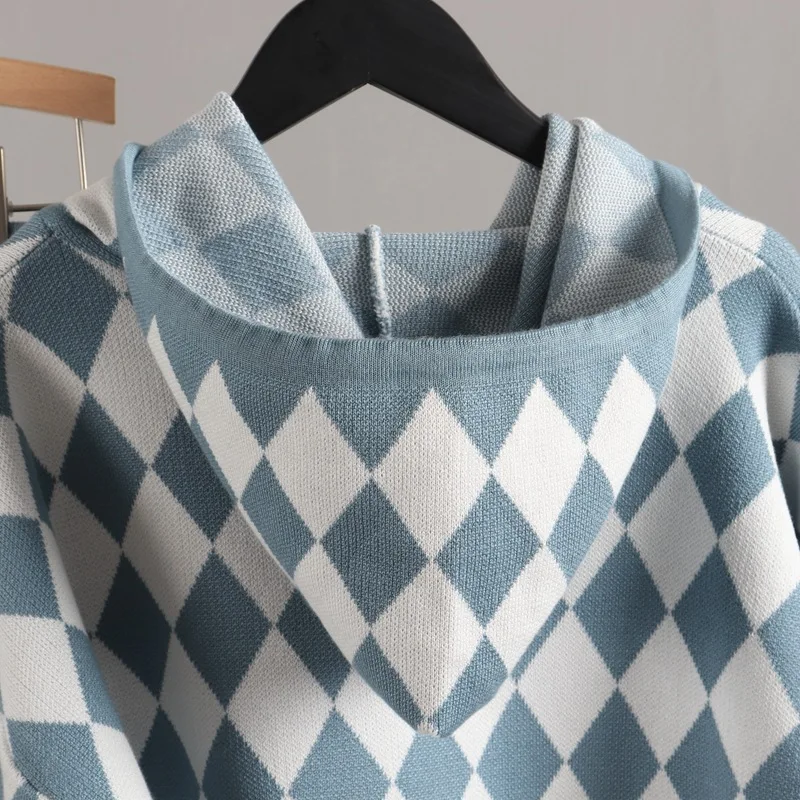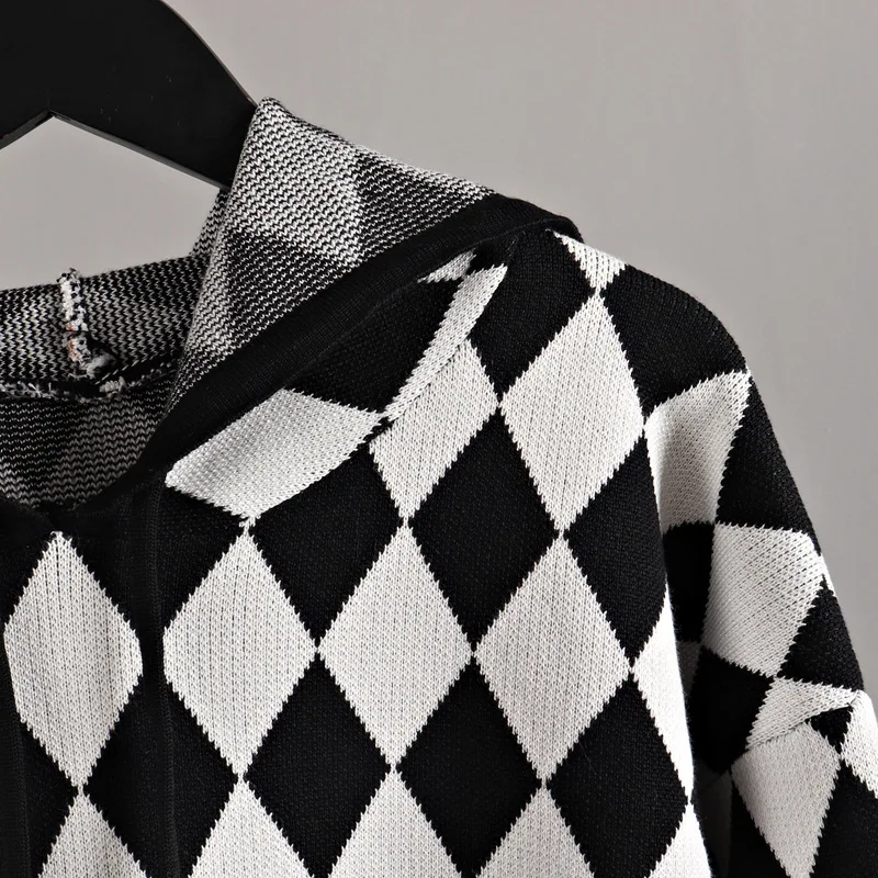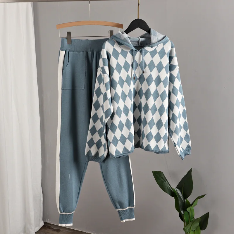 Женский трикотажный спортивный костюм с капюшоном, Повседневный свитер с ромбовидным капюшоном и штаны-шаровары, Осень-зима 2021