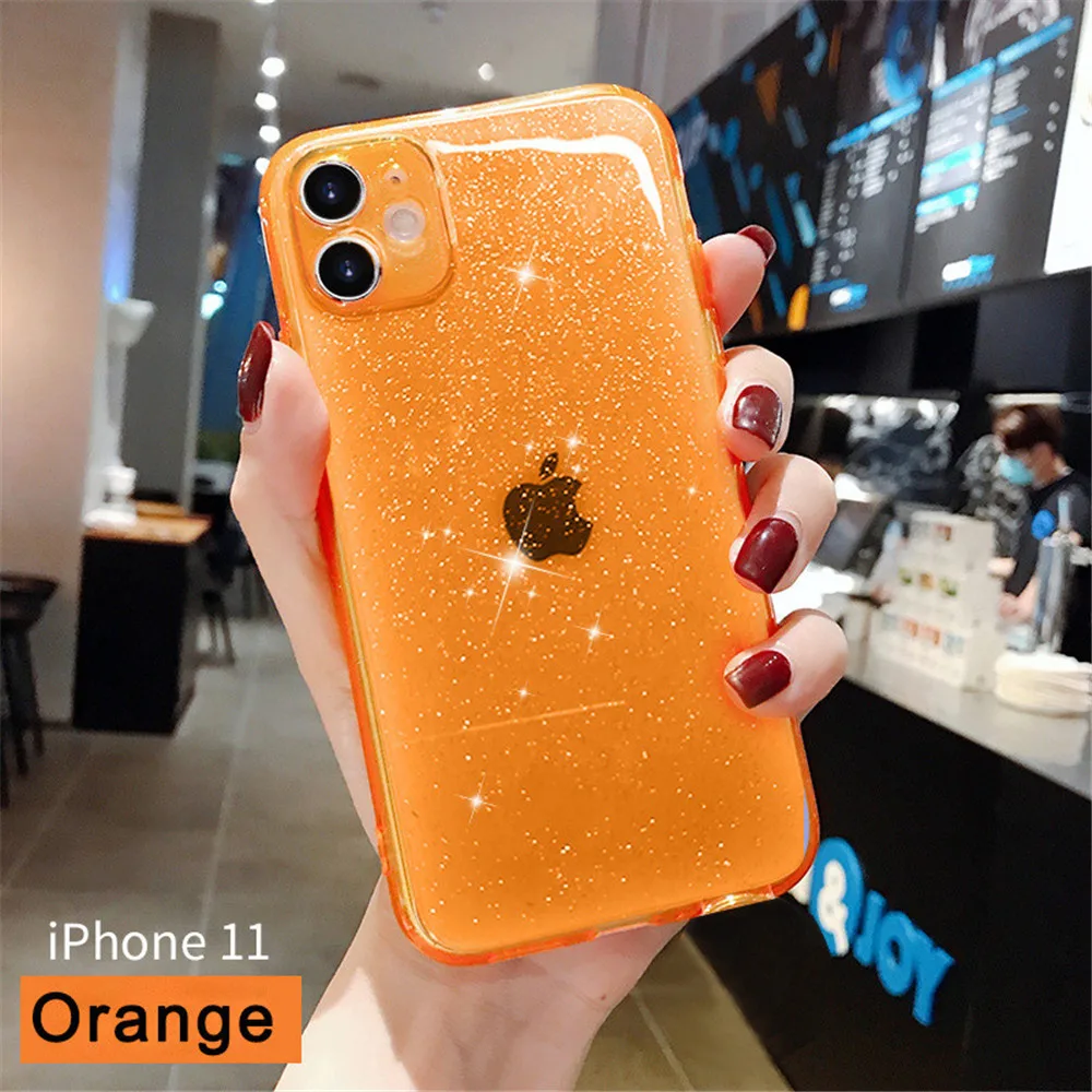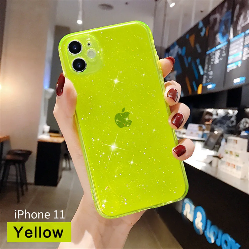 Чехол для iPhone 12, 11Pro, XR, XS Max, X, флуоресцентный, с блестк...