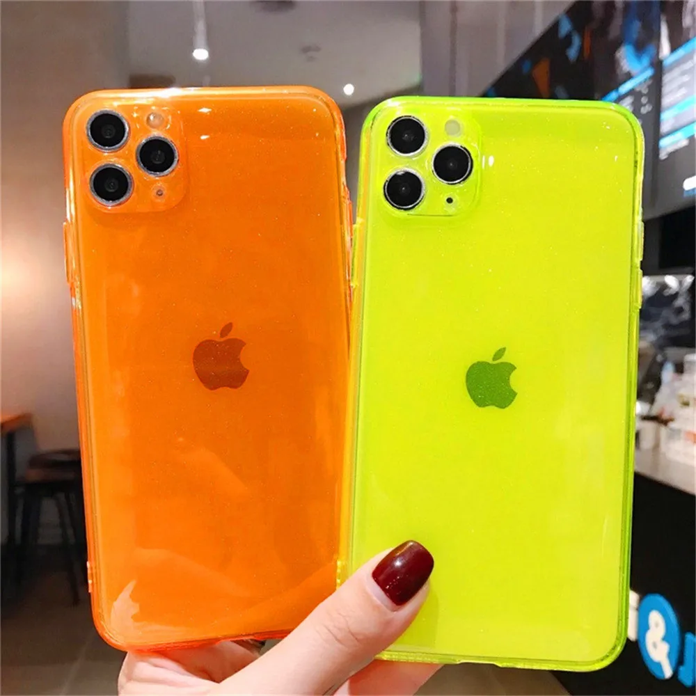 Блестящий Флуоресцентный цветной бампер для телефона iPhone 12 11 P...