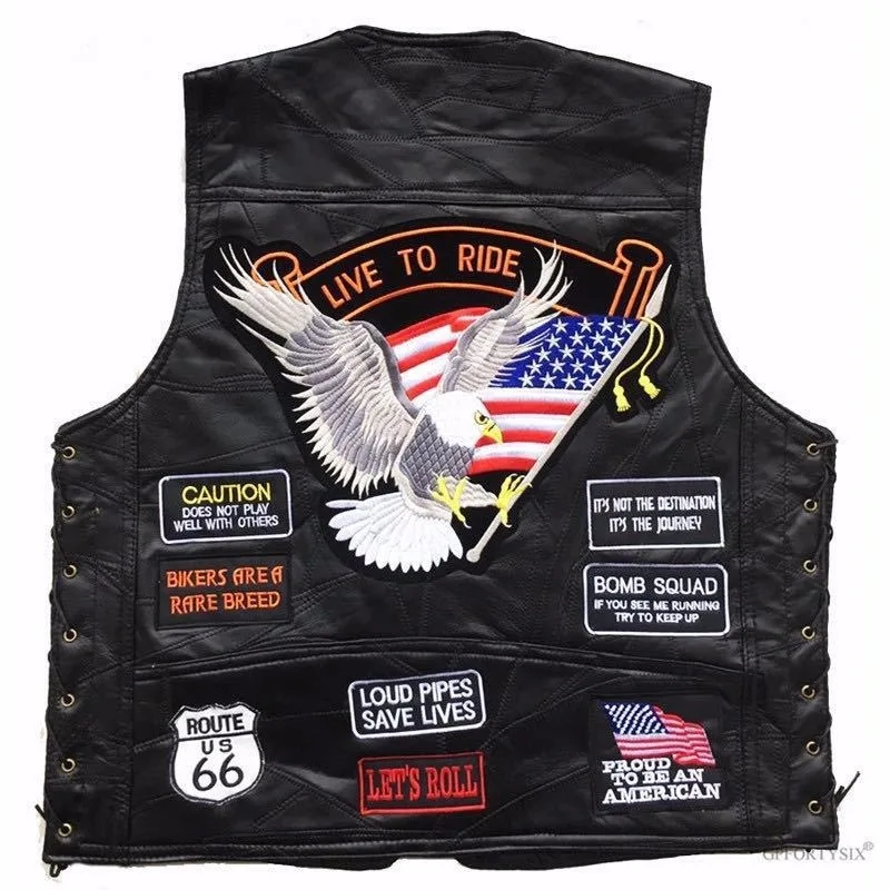 Мотоциклетная кожаная куртка без рукавов с вышивкой, мужчкие спорти...