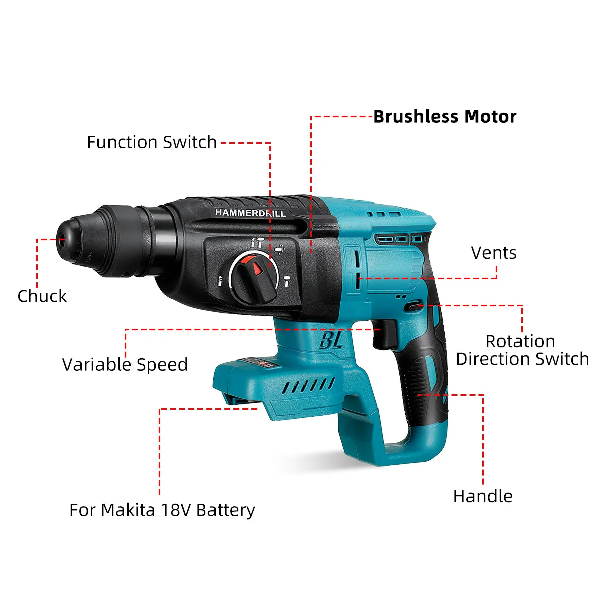 Дрель-перфоратор Drillpro аккумуляторная ударная аккумуляторная, 18 в