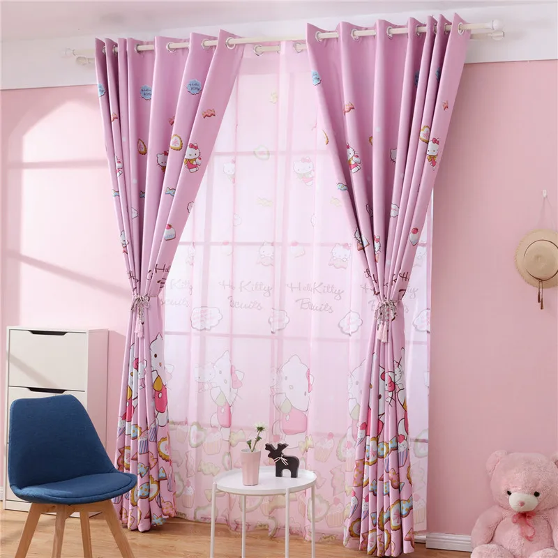 Светонепроницаемые шторы с мультяшным рисунком кота для детей, гостиной, спальни, милые детские оконные шторы для девочек 2JL370