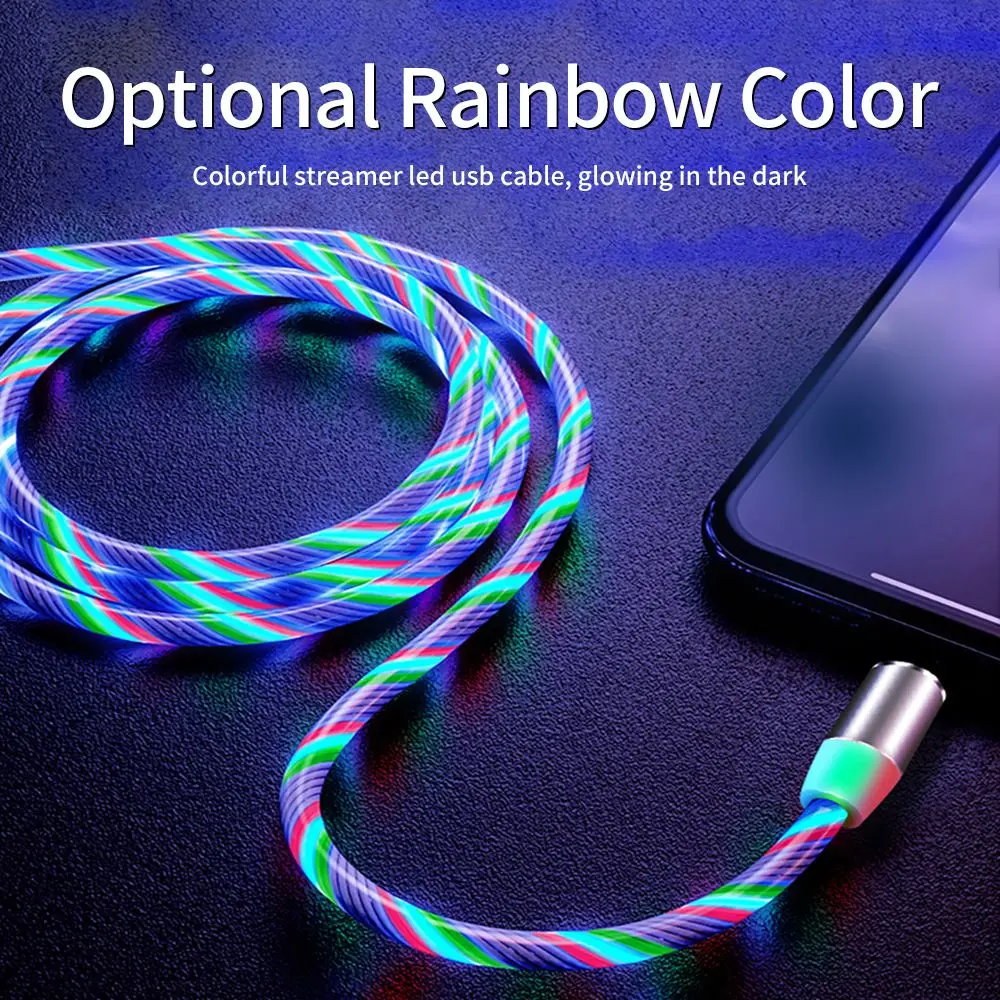 Кабель для мобильных устройств, со светодиодной подсветкой, совместим с Micro USB, Type-C, iPhone