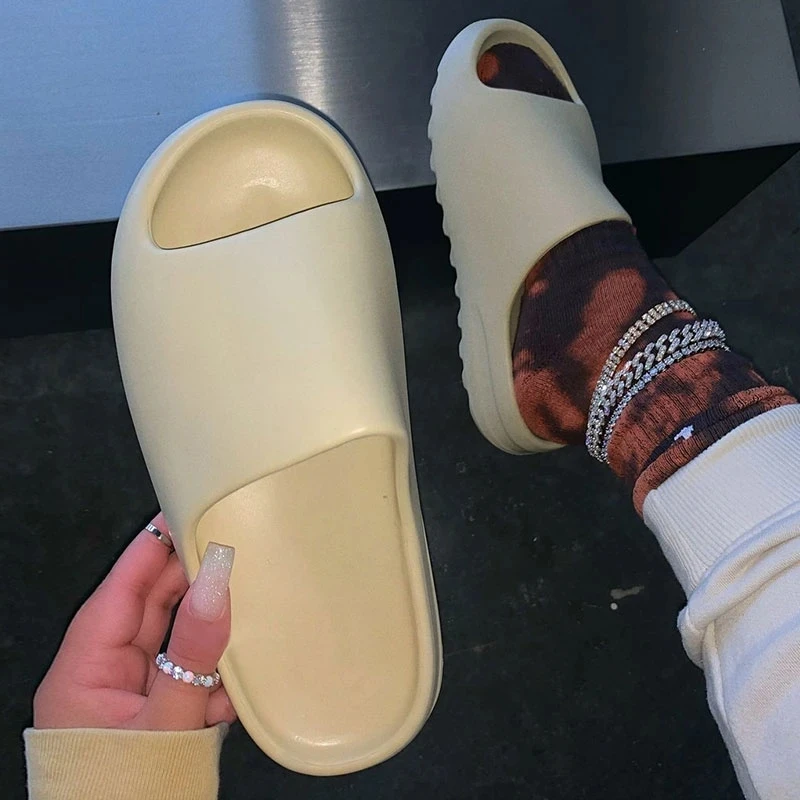 Сланцы Yzy женские на толстой подошве, Нескользящие шлепанцы на платформе, для ванной комнаты, трендовые дизайнерские тапочки