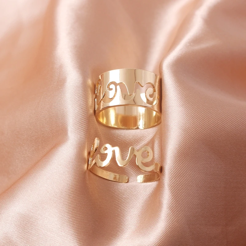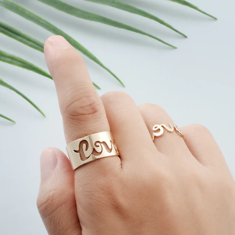 Богемный ажурный набор с английскими буквами, открывающимися на палец, кольца для мужчин и женщин, парные кольца для влюбленных, обручальные, свадебные украшения