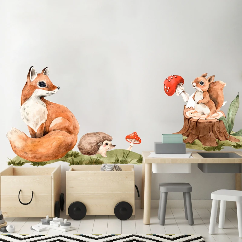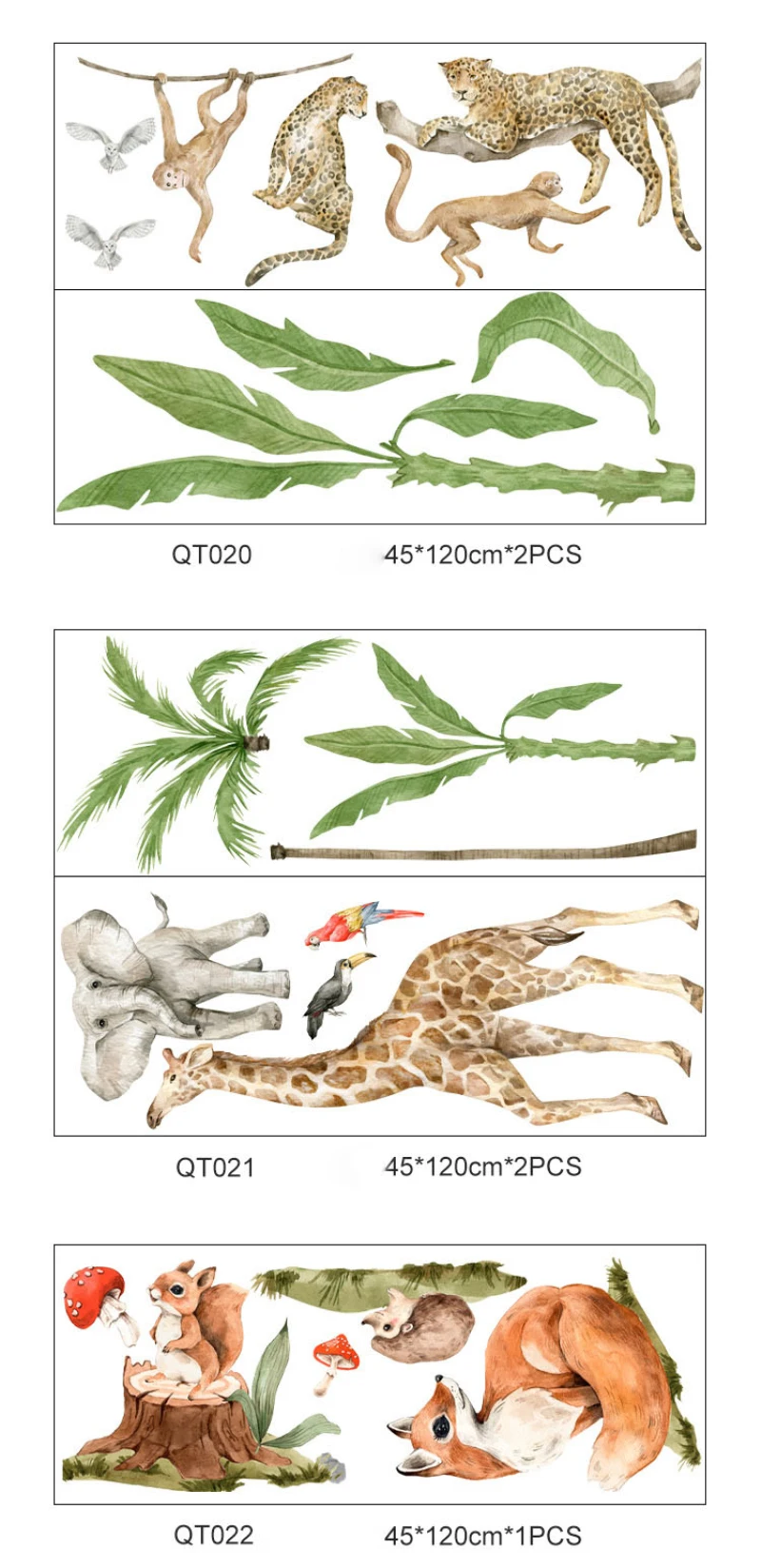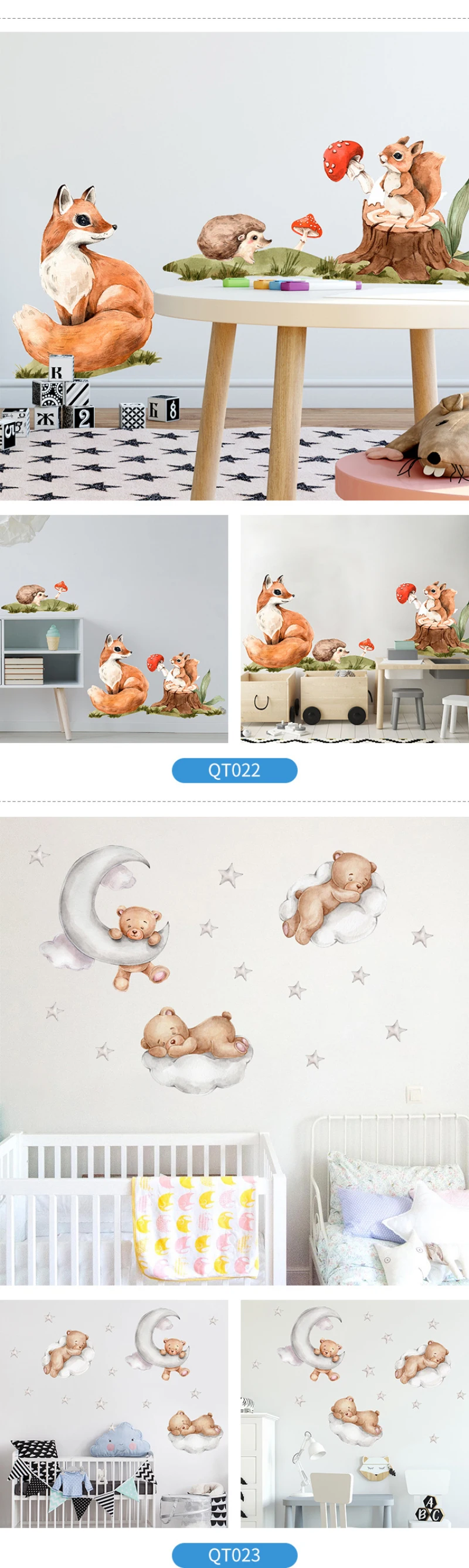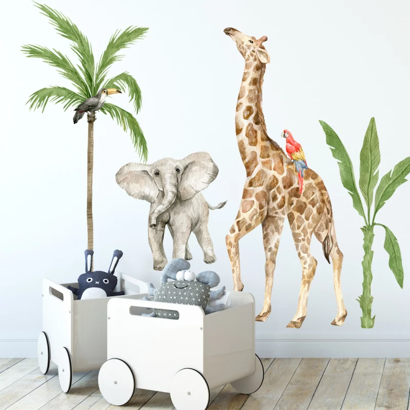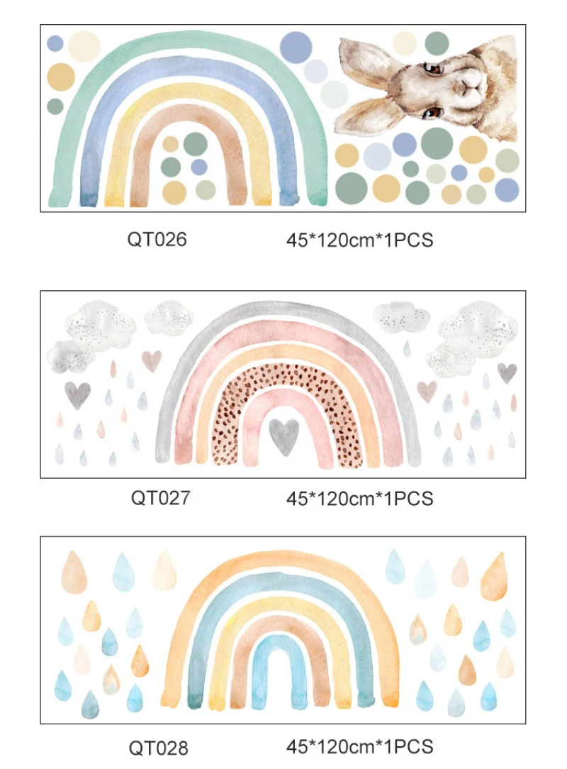 Акварельные Мультяшные настенные наклейки, съемные обои для детской комнаты, наклейки радуги жирафа
