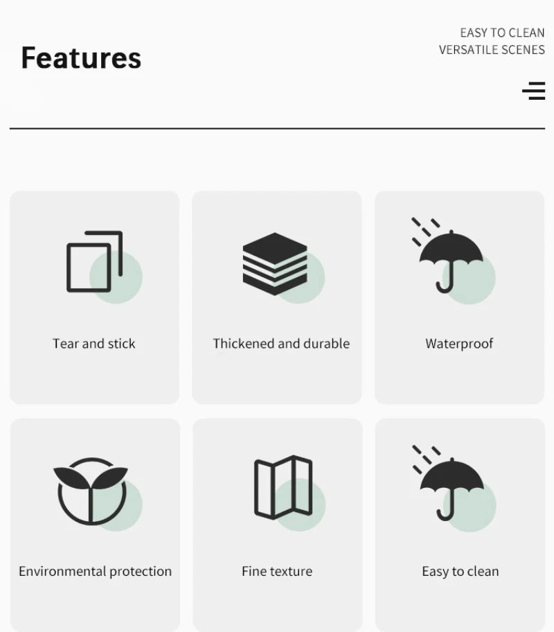 Функция: ремонт мебели, украшение, водонепроницаемость, пылезащита, установленная поверхность может быть очищена непосредственно водой.