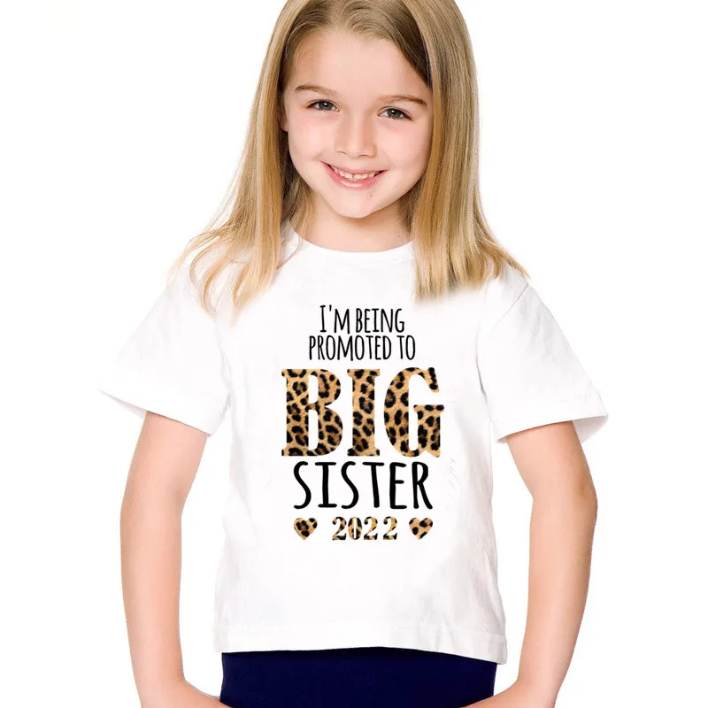 Объявление, одежда для девочек, предложение на старшую сестру 2021 2022, Детская футболка с леопардовым принтом, повседневная детская футболка, детские топы, HKP5431