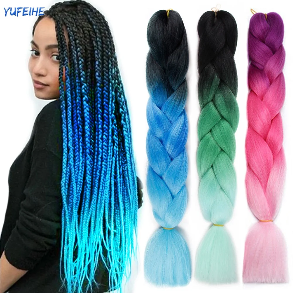 24 дюйма Джамбо косы синтетические плетеные волосы Омбре натуральные волосы для наращивания для женщин DIY Волосы крючком косы розовый фиолетовый желтый